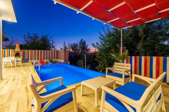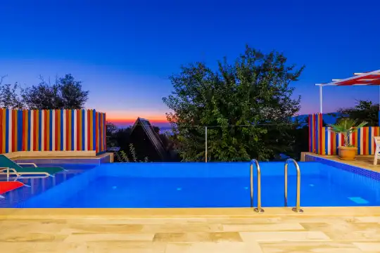 Doga Manzarali Villa Kiralik Villa Linam, Kalkan Üzümlü mevkiinde 2 kisi kapasitelidir. Doga içinde bulunan kiralik villamiz etrafi korunakli muhafazakar kiralik villa seçeneklerimiz arasindadir. Villa içerisinde ihtiyaç duyabileceginiz tüm ekipmanlar mevcut oluip villamiz balayi çiftleri için ideal bir seçenektir.