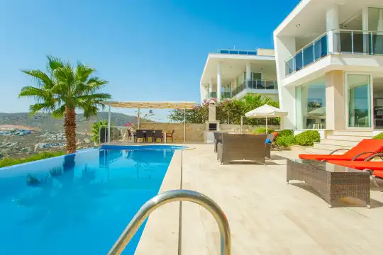 Deniz Manzarali Villa Kiralik Villa Lisbon , Kalkan Kiziltas mevkiinde 5 yatak odali 10 kisi konaklama kapasitesine sahiptir. Deniz manzarali villamiz lüks dizayn edilmis içerisinde ihtiyaç duyabileceginiz tüm ekipmanlar bulunmaktadir. Merkeze yakin konumu bulunan kiralik villamizin içerisinde bilardo salonu, spor odasi ile villa içerisinde keyifli zaman geçirbilirsiniz. Kalabalik aile ve arkadas gruplari için uygun olan kiralik villamiz muhtesem bir tatil için misafirlerini agirlamayi beklemektedir.