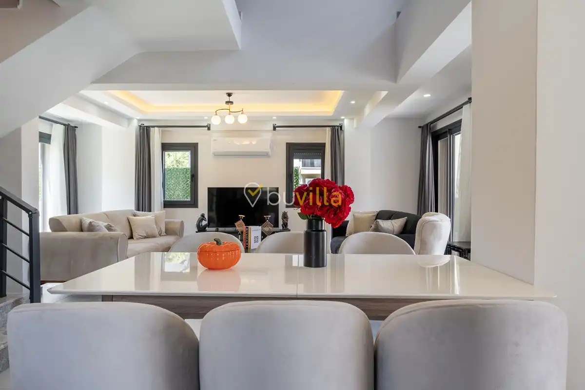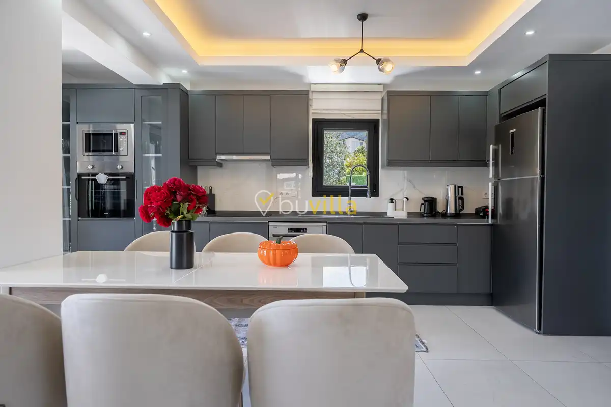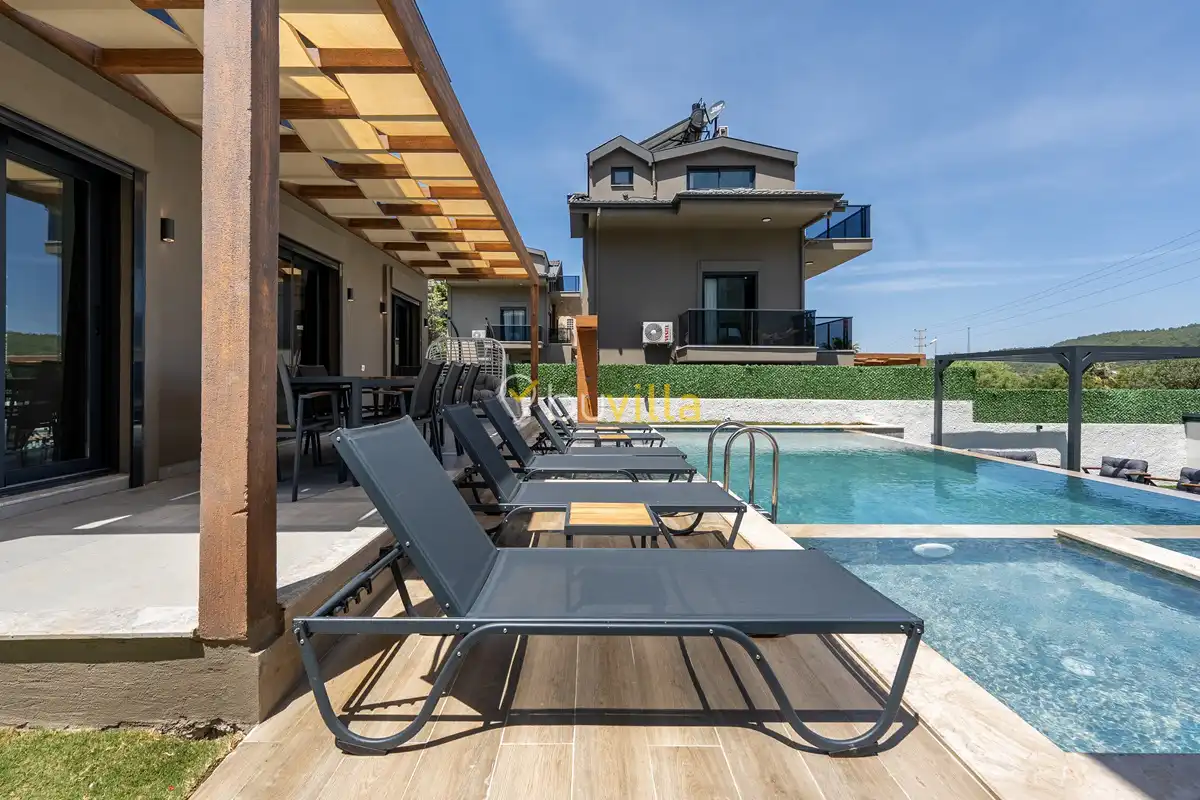 Villa Maison, Fethiye’nin sakin ve doğayla iç içe bölgelerinden biri olan Ovacık’ta konumlanan, modern ve şık tasarıma sahip özel bir tatil villasıdır. Ferah doğa manzarası ve huzurlu atmosferiyle öne çıkan villamız, şehir kalabalığından uzak, konforlu bir villa tatili arayan misafirler için ideal bir konaklama deneyimi sunmaktadır. Toplam 4 yatak odası ve 8 kişilik konaklama kapasitesi ile Villa Maison, geniş aileler ve arkadaş grupları için rahat ve kullanışlı bir yaşam alanı sağlar. Geniş iç mekânları, modern mimarisi ve özenle seçilmiş dekorasyon detayları sayesinde tatiliniz boyunca konfor ve estetik bir arada sunulmaktadır. Doğa ile iç içe, sakin ve keyifli bir ortamda unutulmaz bir kiralık villa deneyimi yaşamak isteyen misafirler için Villa Maison, Fethiye’de seçkin bir tatil alternatifidir.