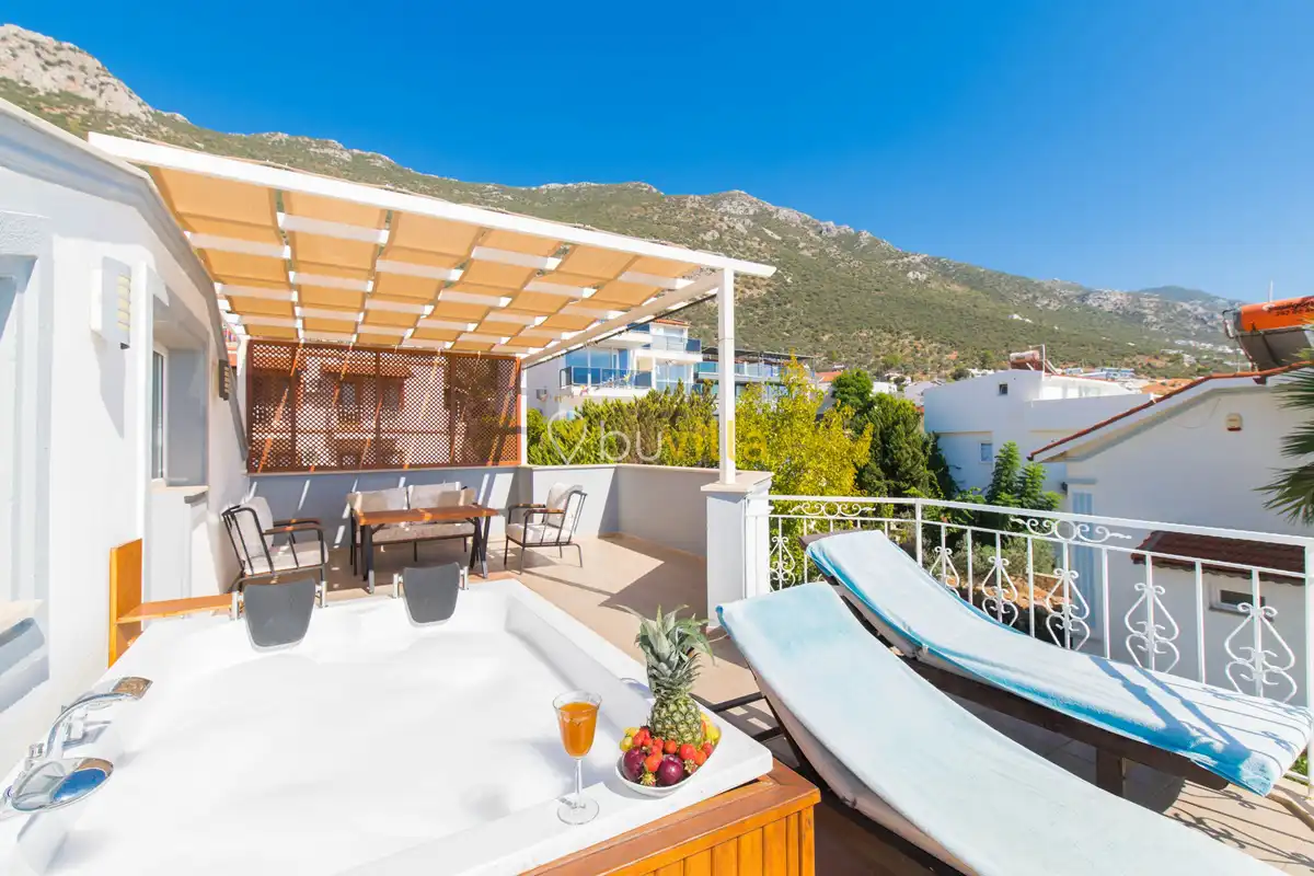 Kalkan Kızıltaş mevkiinde yer alan Villa Mare Monte, merkezi konumu, deniz manzarası ve sunduğu konforlu olanaklarla ayrıcalıklı bir villa tatili deneyimi sunar. 2 yatak odasına sahip olan villamız, 4 kişilik konaklama kapasitesi ile özellikle balayı çiftleri, çekirdek aileler ve sakin bir tatil arayan misafirler için ideal bir kiralık villa seçeneğidir.