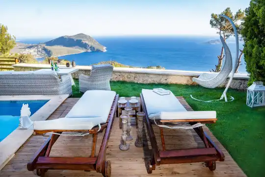 Kalkan Incebel mevkiinde buklunmaktadir. 5 kisi konaklama kapasitesine ve 3 yatak odasina sahip villamiz genis yapisi ve konforlu mobilyalariyla aile ve arkadas gruplarina uygun bir yapida tasarlanmistir. Kendine özel havuzunun yaninda ortak yari olimpik bir havuza da sahip olan Villa Marlin muhtesem deniz manzarasina sahiptir. Sitemizde bulunan Clubhouse restoranimizda misafirlerimiz birbirinden lezzetli yemekleri yiyip, kafemizde içeceklerini içebilirler.Ayrica çocuklar için ortak trambolin sitemizde kullanima açiktir. Merkeze yakin bir konumda bulunan Villa Marlinde ihtiyaciniz olan her sey mevcuttur. Villa Marlin konforlu ve keyifli bir tatil için siz degerli misafirlerini beklemektedir.