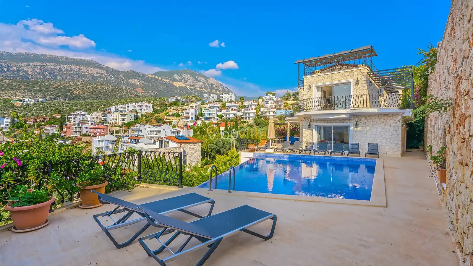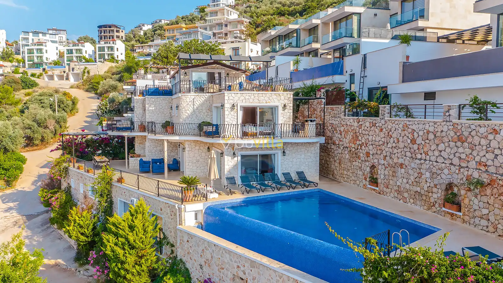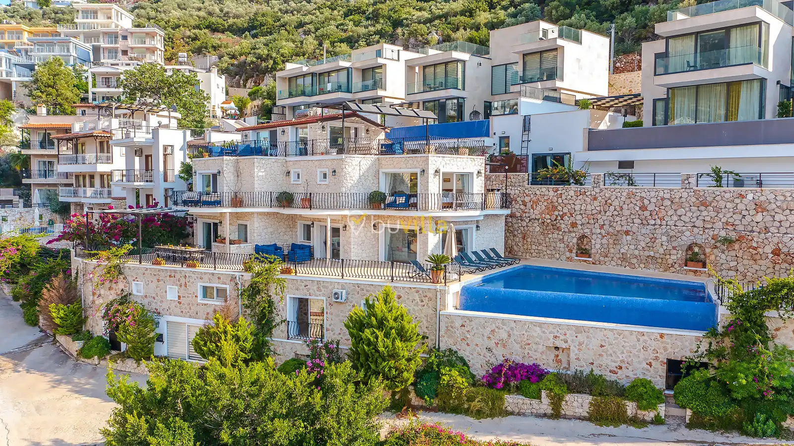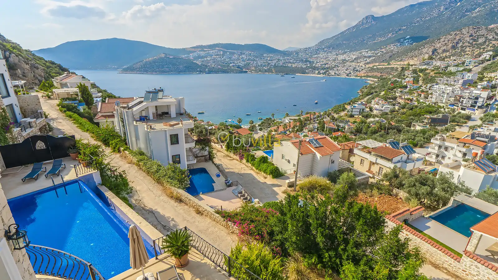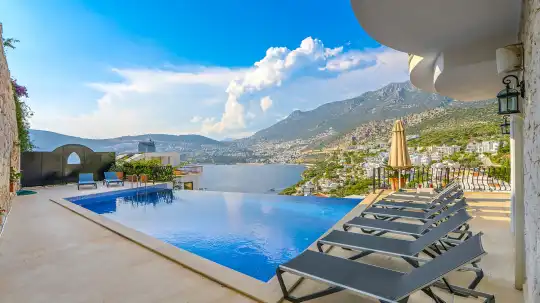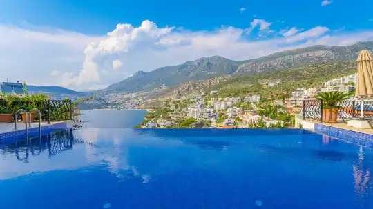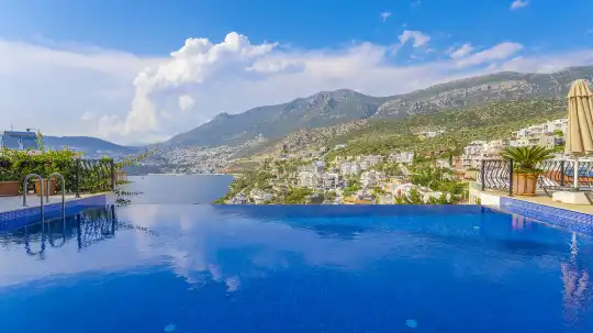 Kalkan Kışla mevkiinde yer alan 5 yatak odalı, 10 kişi kapasiteli kiralık villa, kalabalık aileler ve arkadaş grupları için ideal bir seçenektir. Plaja yürüme mesafesinde olan bu villa, ihtiyaç duyabileceğiniz tüm ekipmanlarla donatılmıştır. Eşsiz deniz manzarası ve konforlu tasarımıyla unutulmaz bir tatil deneyimi sunar.