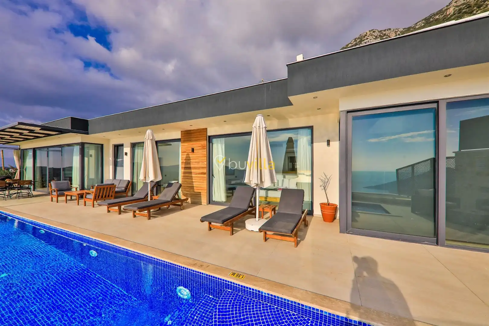 Villa Maysa, Kalkan Kördere mevkiinde konumlanan, tek katlı ve özenle dekore edilmiş özel bir tatil villasıdır. Kapalı havuzu ve jakuzisiyle dört mevsim konfor sunan villamız, hem dinlenmek hem de manzaranın tadını çıkarmak isteyen misafirler için ideal bir seçenektir. 4 kişilik konaklama kapasitesine sahip olan Villa Maysa, 2 yatak odası ile aileler ve çiftler için rahat bir konaklama imkânı sunmaktadır. Muhteşem deniz ve Kalkan adaları manzarasına hâkim konumu sayesinde Akdeniz’in büyüleyici atmosferini villanın her noktasında hissedebilirsiniz. Modern mimarisi ve özel tasarımıyla dikkat çeken villamız; balayı çiftleri ve muhafazakâr aileler için keyifli ve konforlu bir tatil deneyimi sunmaktadır. Villa Maysa’da gün batımını izlerken Akdeniz’in eşsiz manzarası eşliğinde unutulmaz anlar yaşayabilirsiniz.
