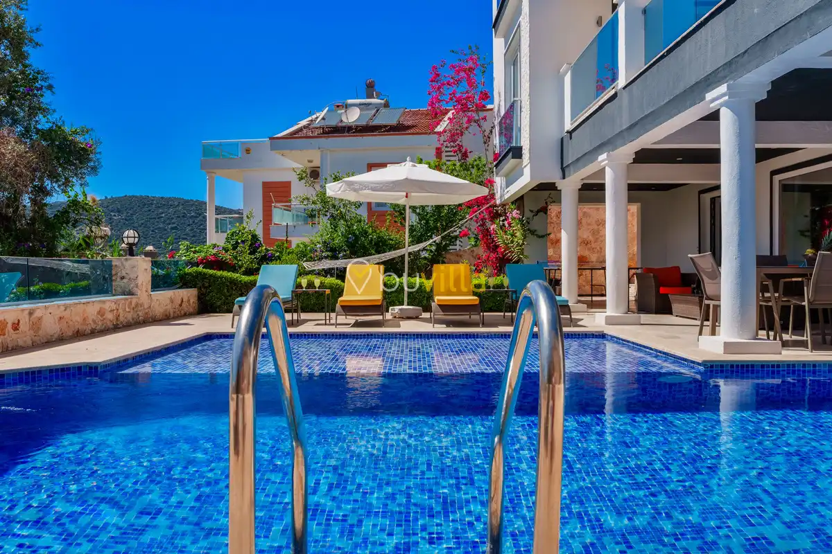 Şık ve modern detaylarla dekore edilen lüks villamızda, tatil süresince ihtiyaç duyabileceğiniz tüm temel araç ve gereçler eksiksiz olarak mevcuttur. Deniz manzarasına karşı konumlanan yaşam alanları sayesinde, aileniz ve sevdiklerinizle birlikte huzurlu ve keyifli vakit geçirebilir, Kalkan’ın eşsiz atmosferinde unutulmaz anılar biriktirebilirsiniz. Konfor, manzara ve sakinliği bir arada sunan Villa Melissa, Kalkan Kızıltaş’ta villa kiralama düşünen misafirler için güçlü bir alternatiftir.