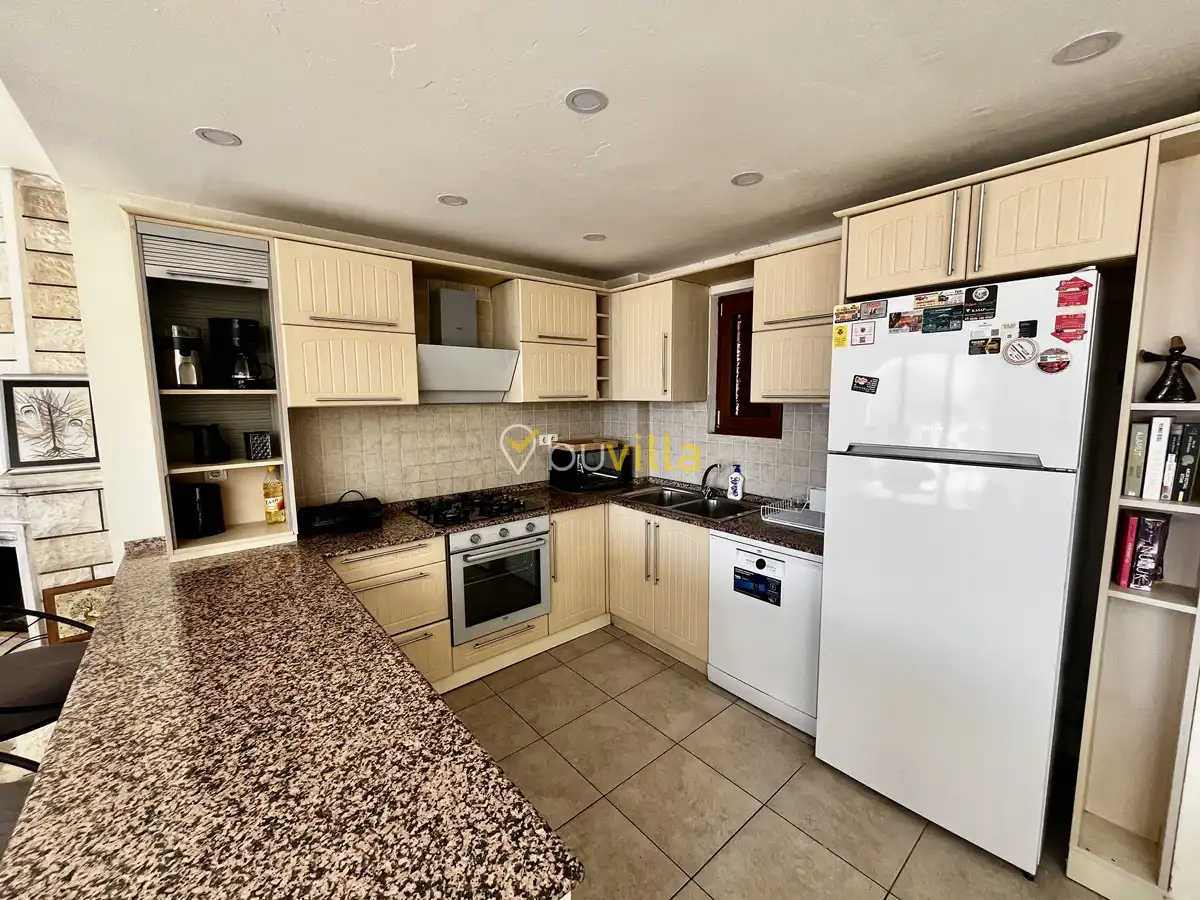 Taş mimarisiyle dikkat çeken villamızın geniş bahçesinde özel yüzme havuzu, şezlonglar, langırt, salıncak, oturma köşesi ve yemek masası yer almaktadır. Plaja sadece 1 km uzaklıkta bulunan Villa Meltem, market, restoran, toplu taşıma ve eğlence mekânlarına da yürüme mesafesindedir. Yerden tavana uzanan geniş pencereleri sayesinde tüm odalardan kesintisiz deniz manzarasının keyfini çıkarabilirsiniz. Konforlu ve keyif dolu bir tatil için sizleri bekliyor.