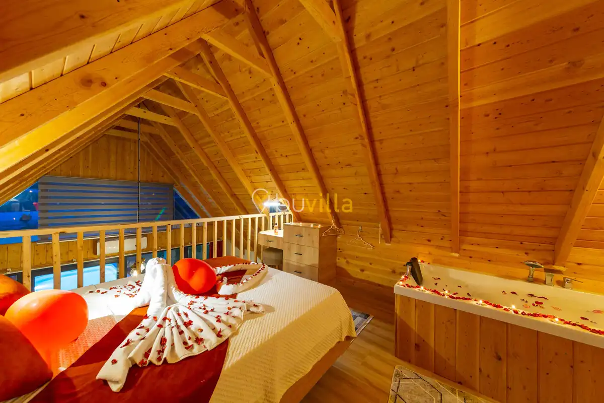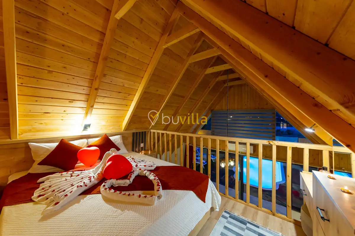 Doğa ile iç içe konumlanan villamızda, şehir kalabalığından uzak, dingin ve romantik bir atmosferde tatilin keyfini çıkarabilirsiniz. İki kişilik konaklama kapasitesine sahip olan bu özel villa, çiftlere özel bir tatil deneyimi sunmak üzere özenle hazırlanmıştır.