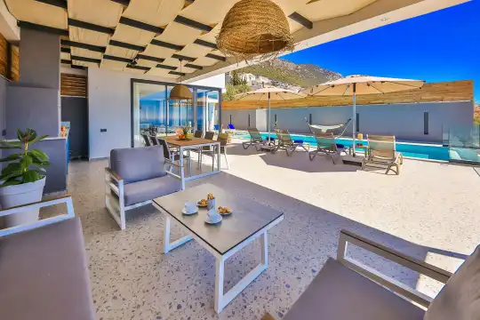 Deniz Manzarali Villa Kiralik Villa Milan , Kalkan Kördere mevkiinde yer almaktadir.3 yatak odali 6 kisi kapasiteli villamizin tüm yatak odalari muhtesem deniz manzarasina hakimdir. Kiralik yazligimizin tam donanimli Amerikan mutfaginda ihtiyaç duyabileceginiz tüm ekipmanlar mevcut olup konforlu mobilyalarla dizayn edilmis salonu hizmetinizdedir. Havuz ve bahçe kati muhtesem bir deniz manzarasina sahip Villa Milan siz degerli misafirlerini agirlamayi beklemektedir.