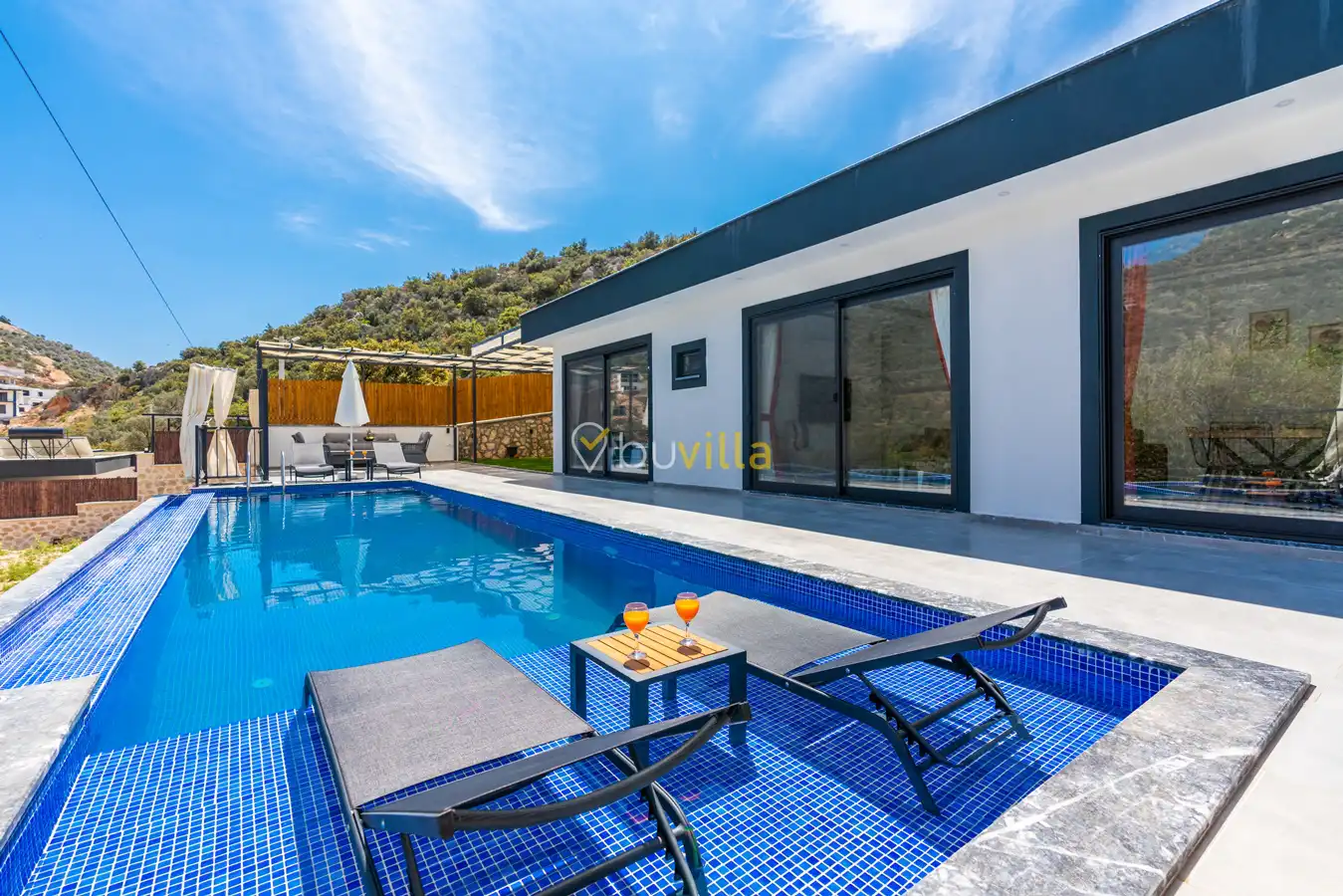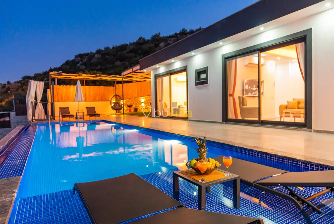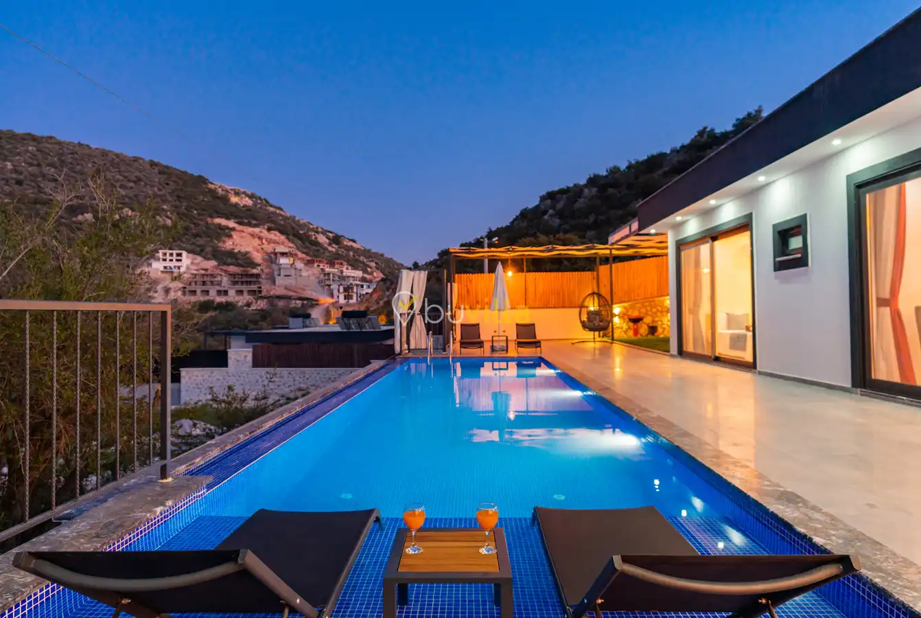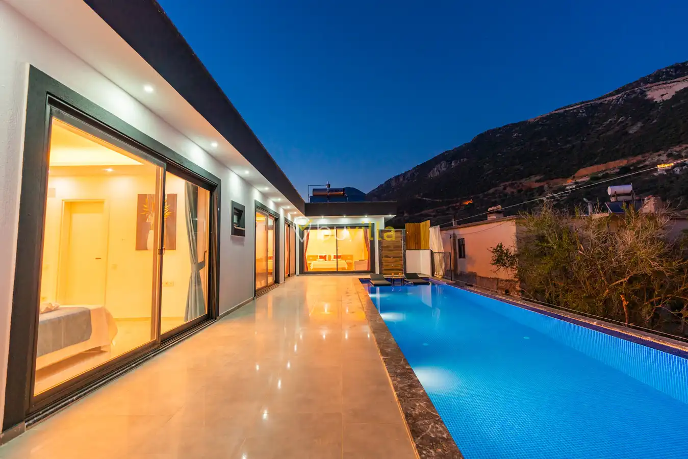 Villa Mister, Kalkan’ın Ordu mevkisinde doğa ile iç içe bir konumda yer almaktadır. Doğa manzarasına sahip olan villamız, gözlerden uzak ve muhafazakâr bir tatil için ideal bir seçenektir. Modern ve şık bir şekilde dekore edilen Villa Mister, 2 yatak odasına sahip olup 4 kişiye kadar konaklama kapasitesine sahiptir. Süit yatak odasında yer alan jakuzi, misafirlerimize ekstra konfor ve keyif sunmaktadır. Balayı çiftleri ve çekirdek aileler için özel olarak tasarlanan villamız, huzurlu ve konforlu bir tatil deneyimi yaşamanız için sizleri bekliyor. Geniş havuz terası ve sakin atmosferiyle Villa Mister, doğa içinde unutulmaz bir tatil geçirmek isteyen misafirlerine kapılarını aralamaktadır.