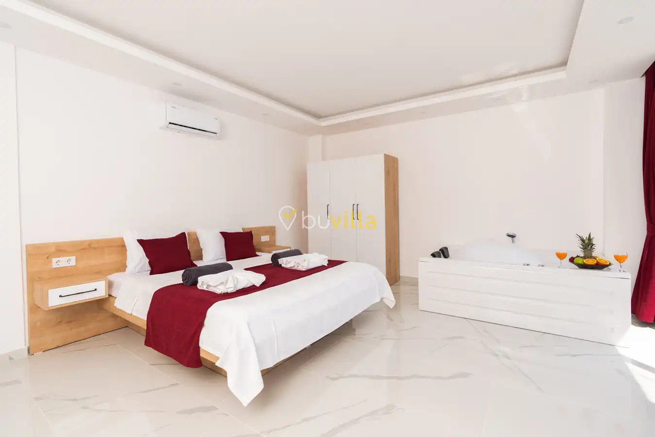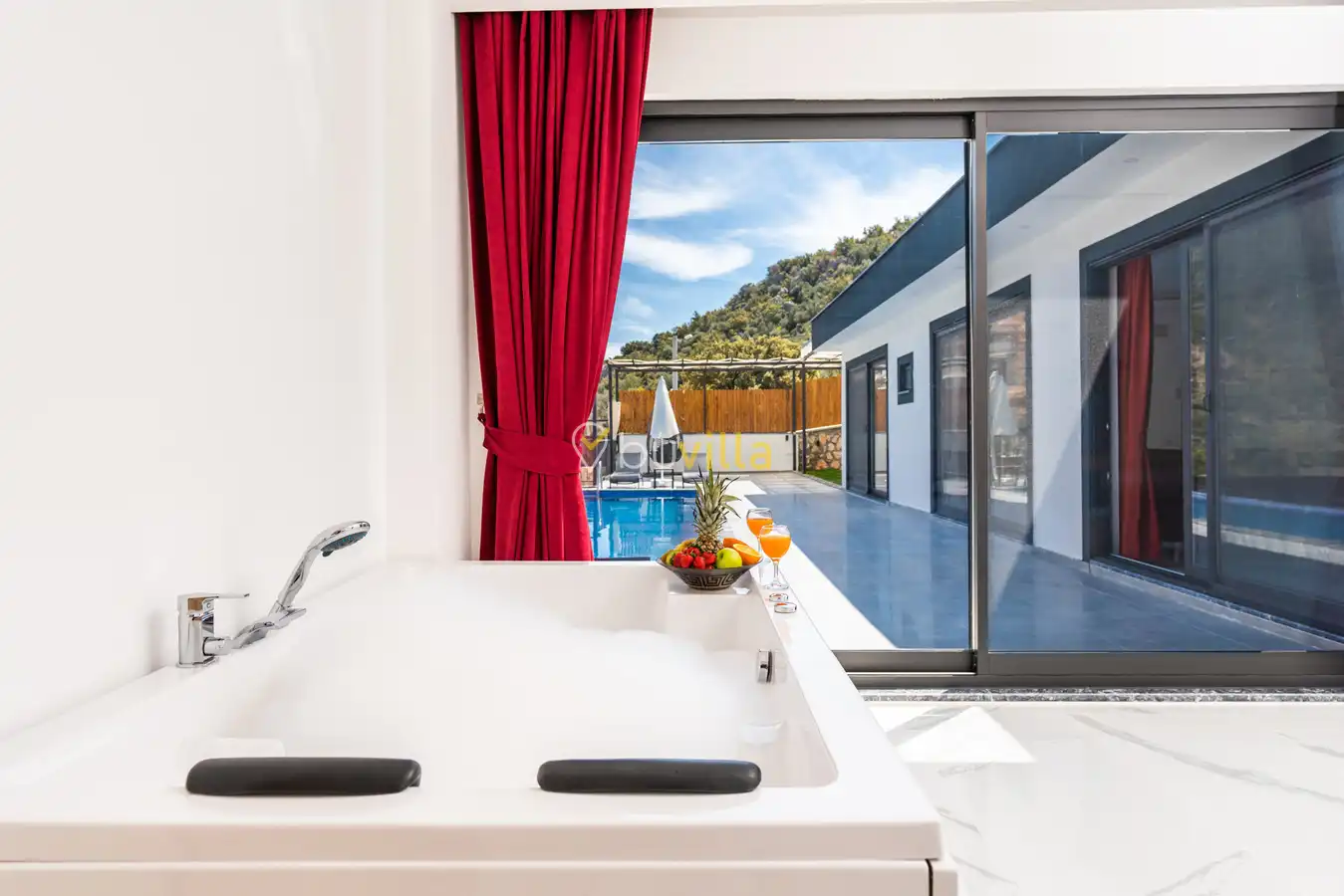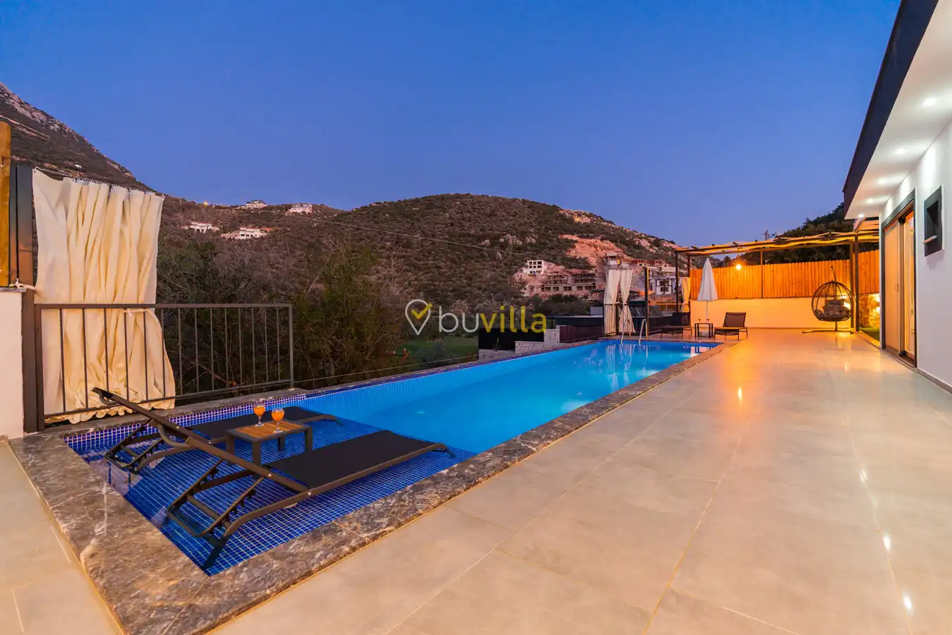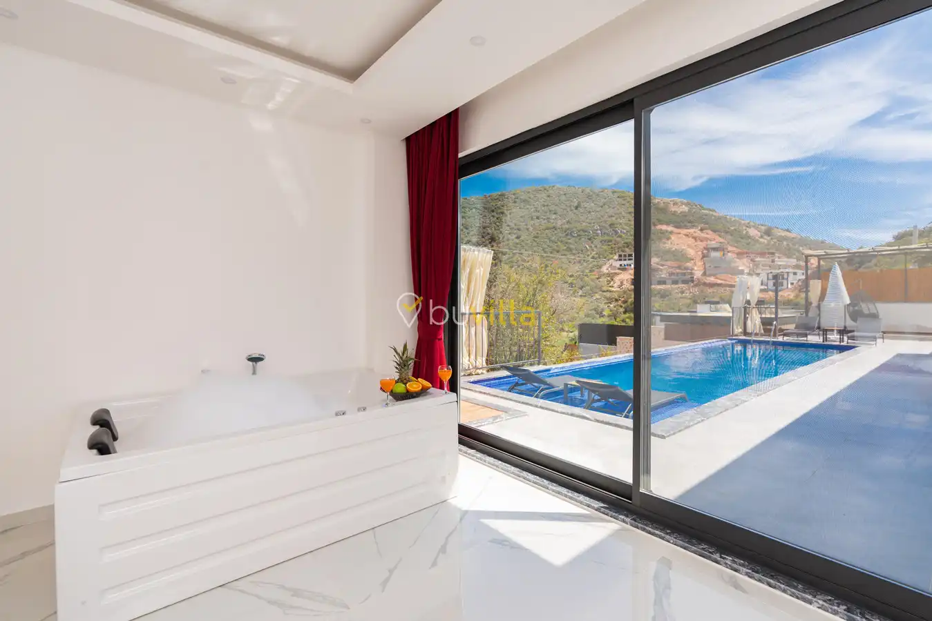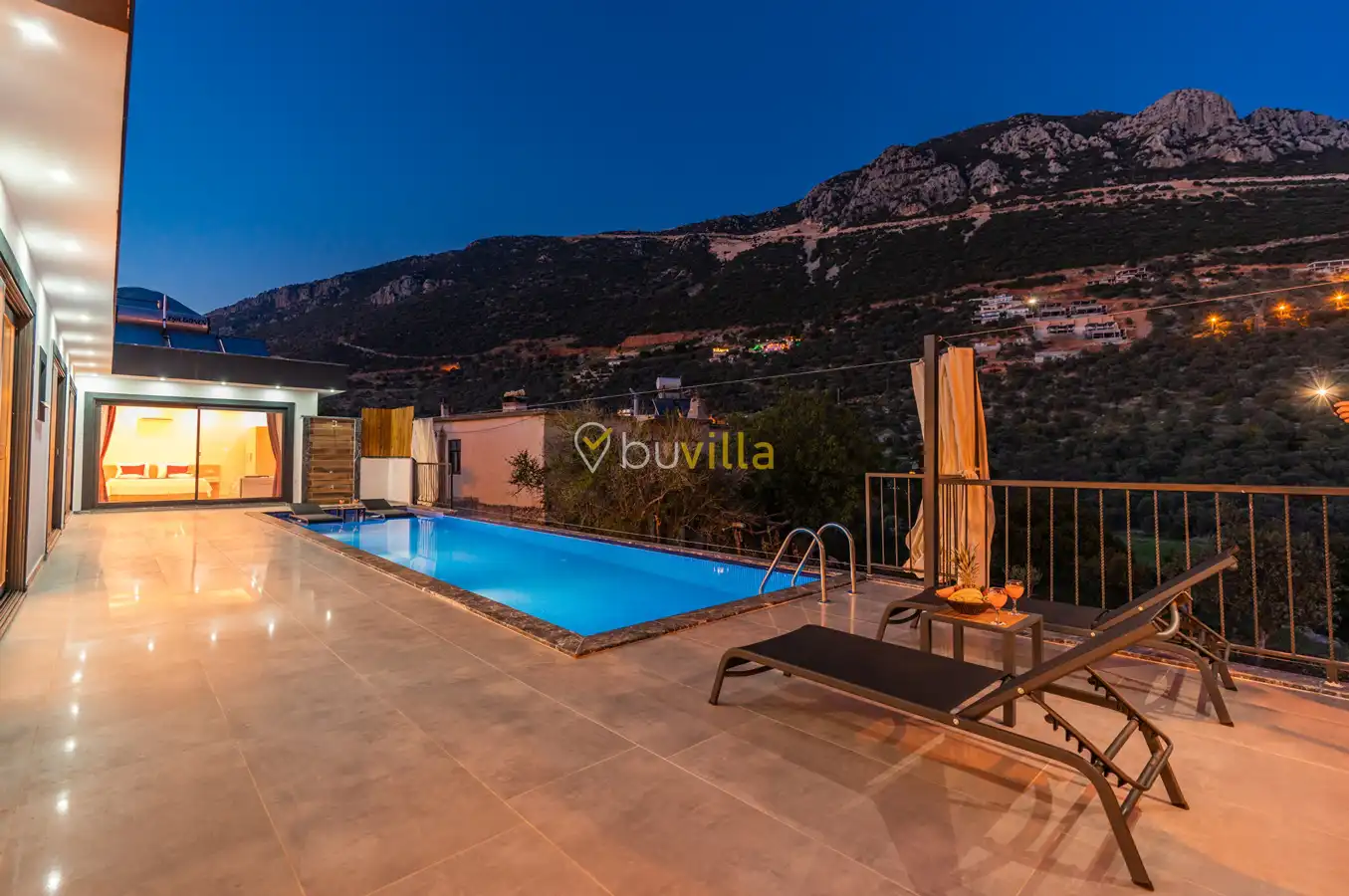 Villa Mister, Kalkan’ın Ordu mevkisinde doğa ile iç içe bir konumda yer almaktadır. Doğa manzarasına sahip olan villamız, gözlerden uzak ve muhafazakâr bir tatil için ideal bir seçenektir. Modern ve şık bir şekilde dekore edilen Villa Mister, 2 yatak odasına sahip olup 4 kişiye kadar konaklama kapasitesine sahiptir. Süit yatak odasında yer alan jakuzi, misafirlerimize ekstra konfor ve keyif sunmaktadır. Balayı çiftleri ve çekirdek aileler için özel olarak tasarlanan villamız, huzurlu ve konforlu bir tatil deneyimi yaşamanız için sizleri bekliyor. Geniş havuz terası ve sakin atmosferiyle Villa Mister, doğa içinde unutulmaz bir tatil geçirmek isteyen misafirlerine kapılarını aralamaktadır.
