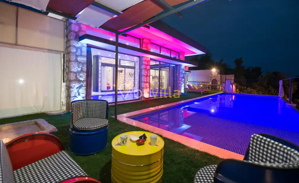 Muhafazakâr Balayi Villasi Kiralik villa Moon Kalkan Üzümlü mevkiinde 1 yatak odali 2 kisi kapasitesine sahiptir. Balayi çiftleri için ideal bir tercih olan kiralik villamizin etrafi perdeleme sistemi ile kapatilmis Patara manzarali, korunakli sonsuzluk havuzlu kiralik balayi villamiz keyifli tatil firsati sunmaktadir. Muhafazakâr kiralik villamiz tas mimarisi ile göz doldurmakta olup içerisinde ihtiyaç duyabileceginiz tüm ekipmanlari bulunmaktadir. Açik ve kapali yüzme havuzu sayesinde hem yaz hem de kis aylarinda tatil yapabilirsiniz. Kiralik villa Moon siz degerli misafirlerini agirlamayi beklemektedir.
