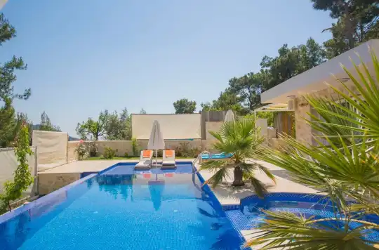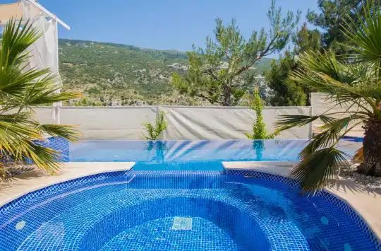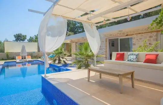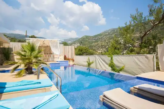 Kalkan Islamlar mevkiinde 2 yatak odali 4 kisi kapasitesindedir. Doga ile iç içe kiralik villa özel yüzme havuzu bulunan kiralik villa da çocuk havuzu bulunmaktadir. Özel tasarimi ve lüks dizayni ile göz dolduran kiralik villa da ihtiyaç duyabileceginiz tüm ekipman bulunmaktadir. Muhafazakâr kiralik villa misafirlerini agirlamayi beklemektedir.