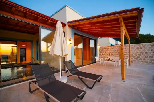 Kalkan’ın doğasıyla öne çıkan Yeşilköy mevkiinde konumlanan, huzurlu bir tatil deneyimi sunan kiralık villa seçenekleri arasında yer almaktadır. 2 yatak odası ve 4 kişilik konaklama kapasitesi ile çekirdek aileler ve sakin bir tatil arayan misafirler için idealdir. Doğa içerisinde yer alan villamız, etkileyici manzarası ile öne çıkarken; misafirlerin konforu düşünülerek tasarlanmış kapalı havuz ve sauna gibi ayrıcalıklar sunar. Günlük kullanıma uygun tam donanımlı mutfağı ve modern yaşam alanları sayesinde tatiliniz boyunca ev rahatlığını hissedebilirsiniz. Villa Mulberry Jade, çevresel mahremiyete önem veren misafirler için uygun özellikler sunan villa seçenekleri arasında yer almakta olup, keyifli ve unutulmaz bir villa tatiline kapı aralamaktadır.