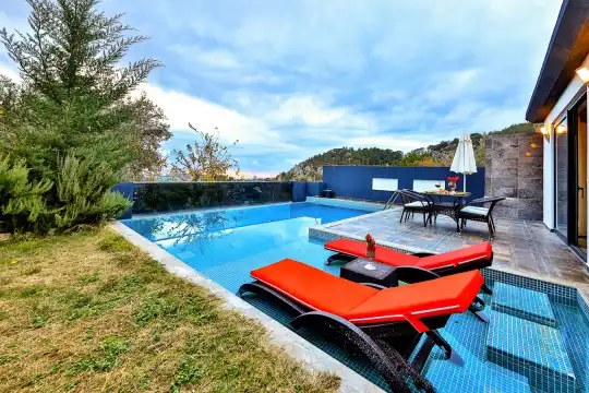 Villa Muzo 1, Kalkan'ın huzur dolu İslamlar mevkiinde konumlanmış, özel balayı tatilleri için ideal bir kiralık villadır. Tek yatak odalı ve 2 kişilik konaklama kapasitesine sahip olan bu villa, gözlerden uzak, muhafazakar bir tatil deneyimi sunmaktadır.