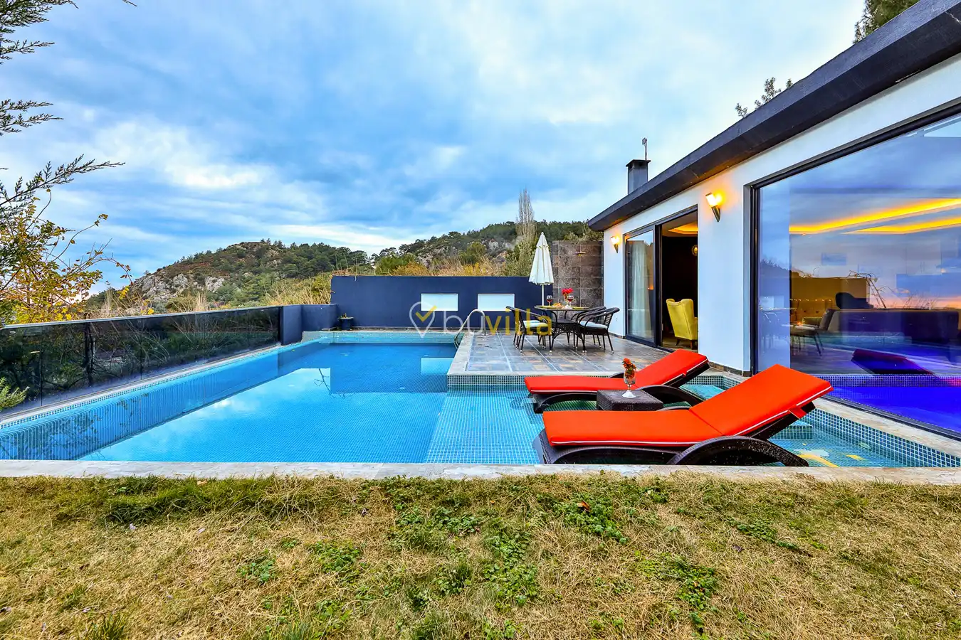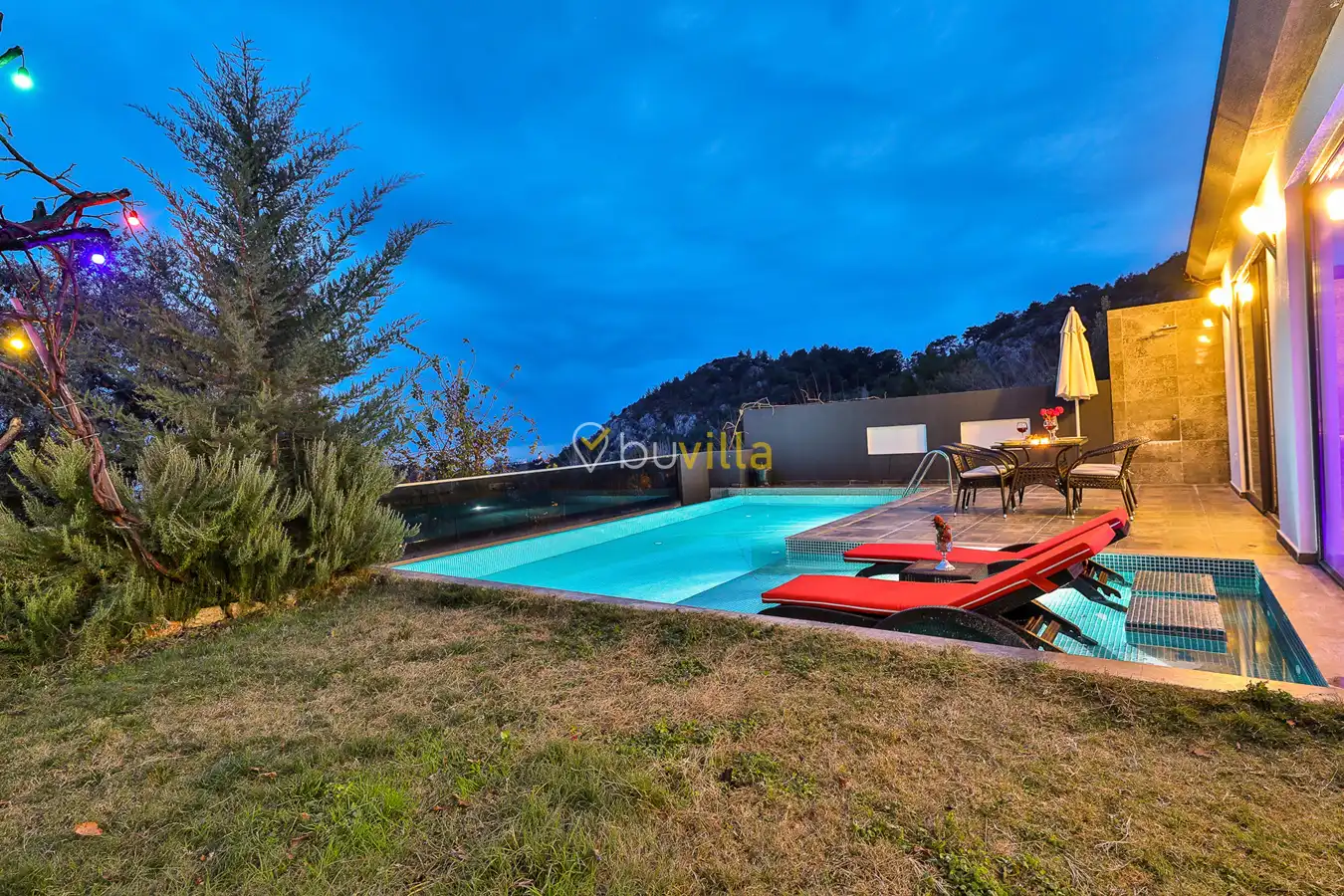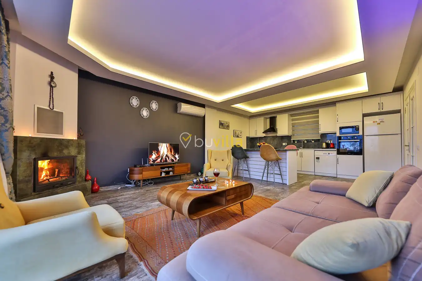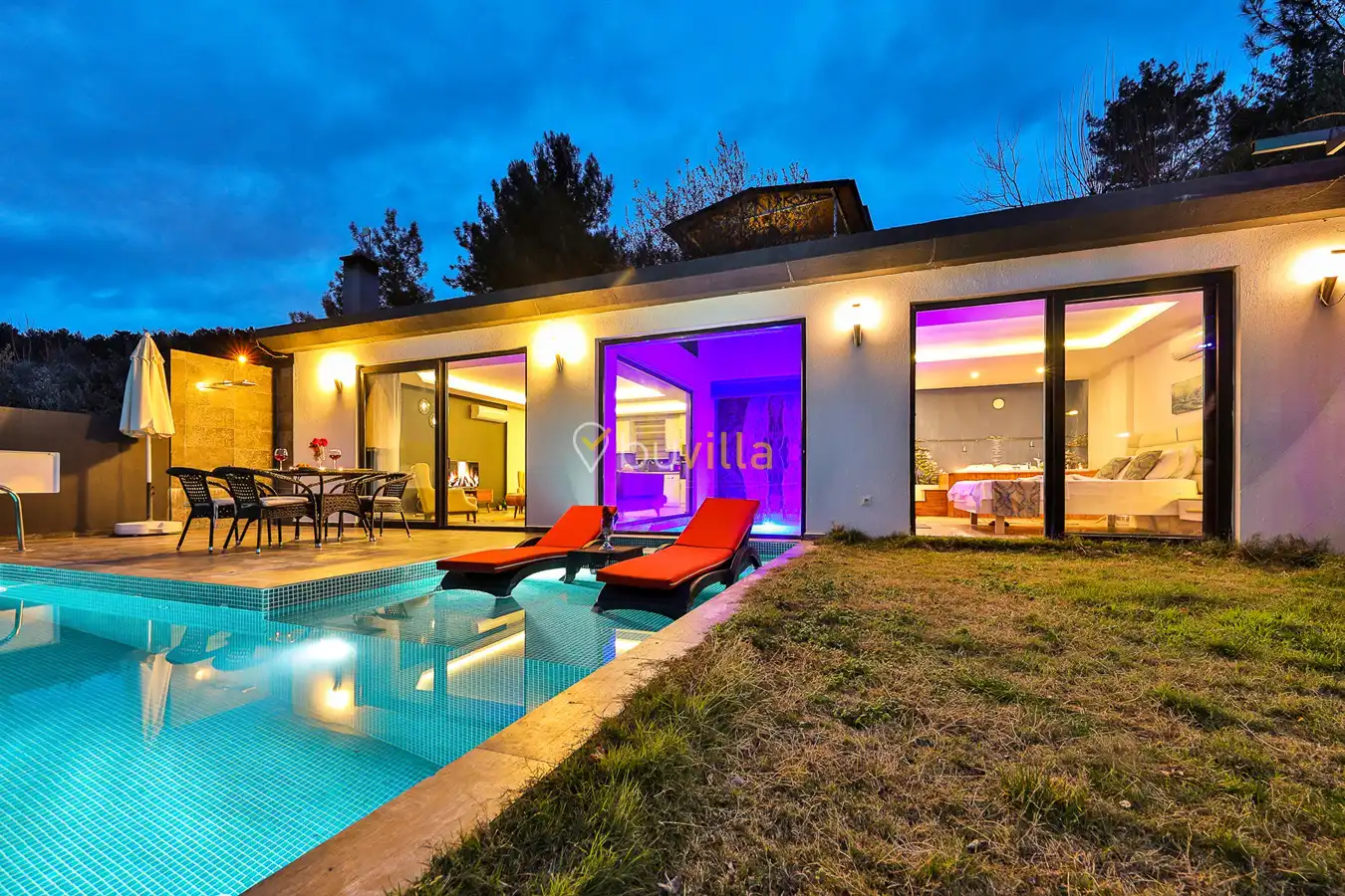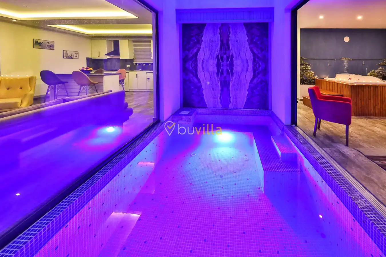 Villanın öne çıkan özellikleri arasında modern ve şık tasarımı, tam donanımlı yaşam alanları ve çiftlerin ihtiyaç duyabileceği tüm olanakların eksiksiz bir şekilde sağlanmış olması yer alır. Jakuzi, kapalı ve ısıtmalı yüzme havuzu gibi lüks detaylar tatilinizi unutulmaz kılarken, yerden ısıtma, petekli ısıtma sistemi ve aktif kullanımlı şömine sayesinde her mevsim konforlu bir tatil geçirebilirsiniz.