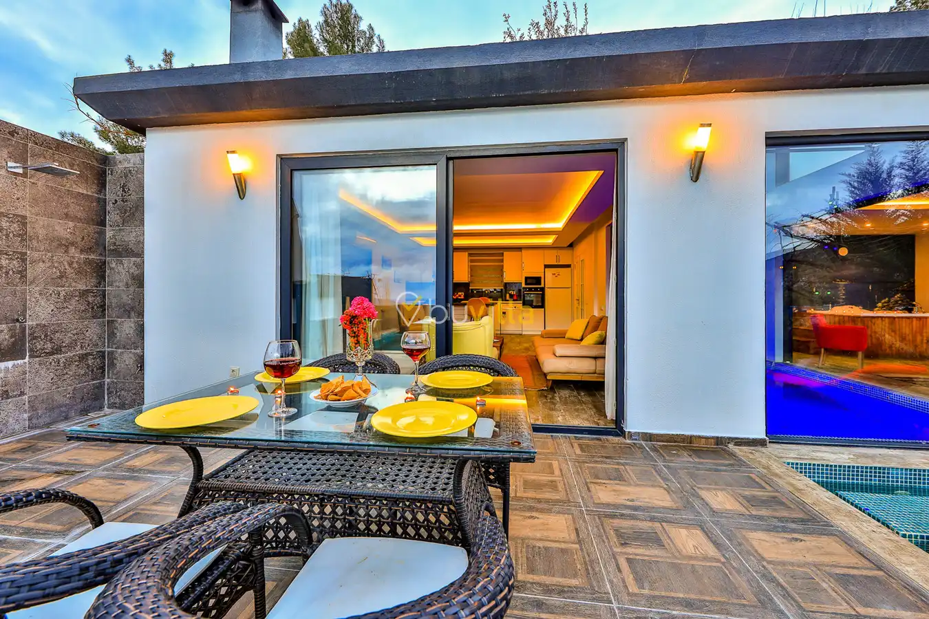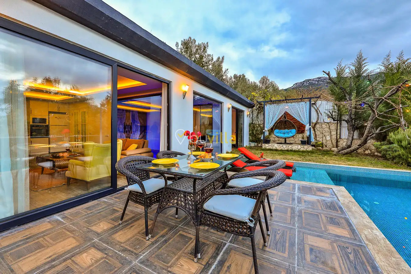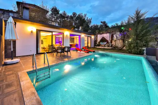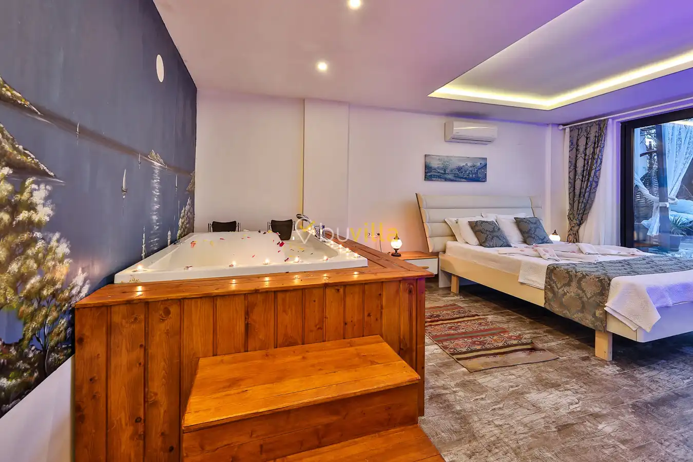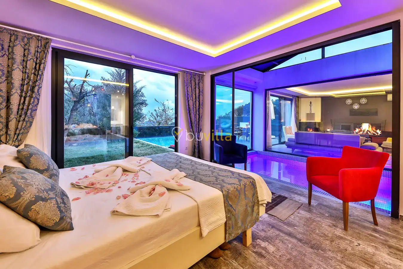 Villanın öne çıkan özellikleri arasında modern ve şık tasarımı, tam donanımlı yaşam alanları ve çiftlerin ihtiyaç duyabileceği tüm olanakların eksiksiz bir şekilde sağlanmış olması yer alır. Jakuzi, kapalı ve ısıtmalı yüzme havuzu gibi lüks detaylar tatilinizi unutulmaz kılarken, yerden ısıtma, petekli ısıtma sistemi ve aktif kullanımlı şömine sayesinde her mevsim konforlu bir tatil geçirebilirsiniz.