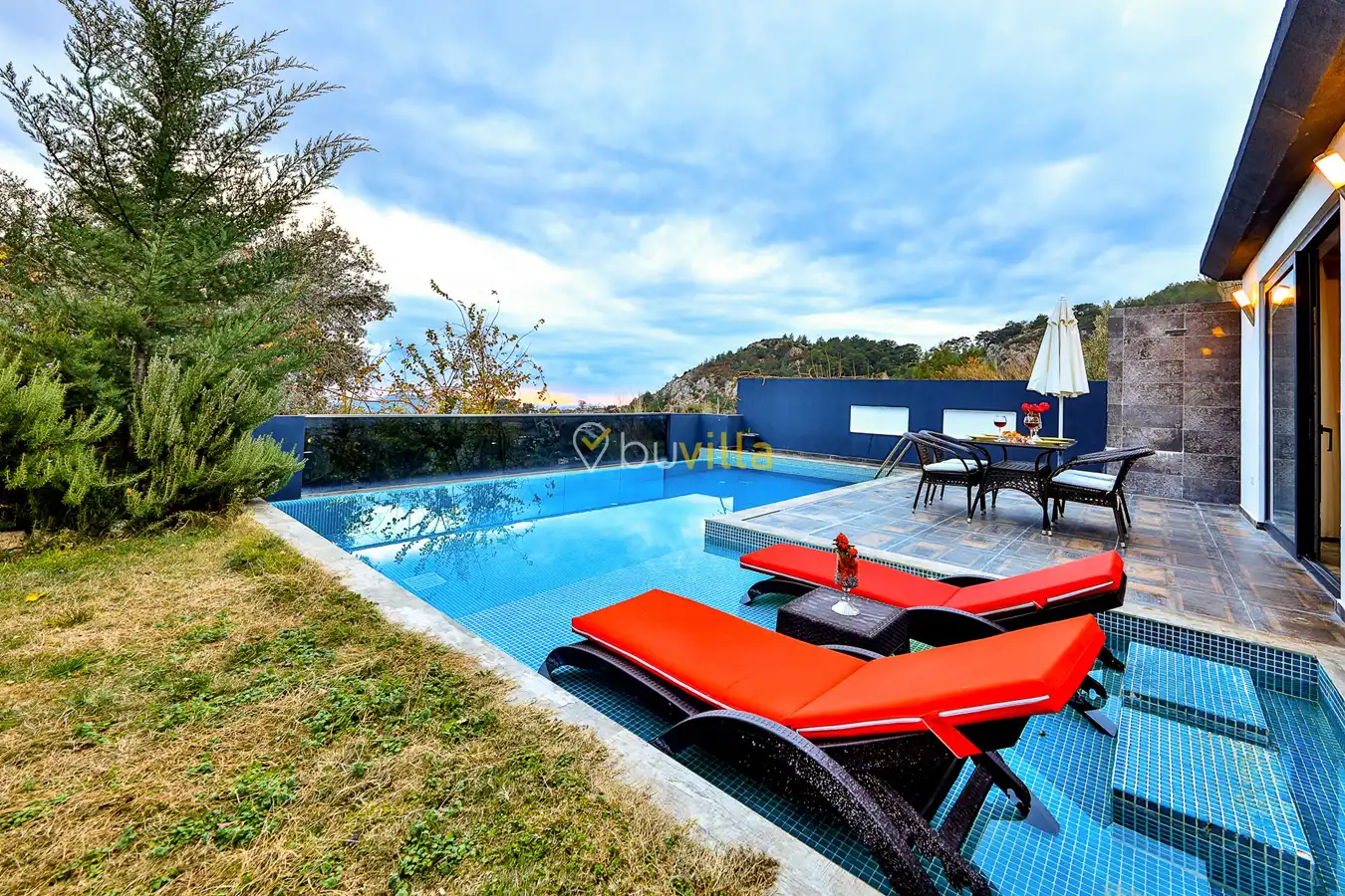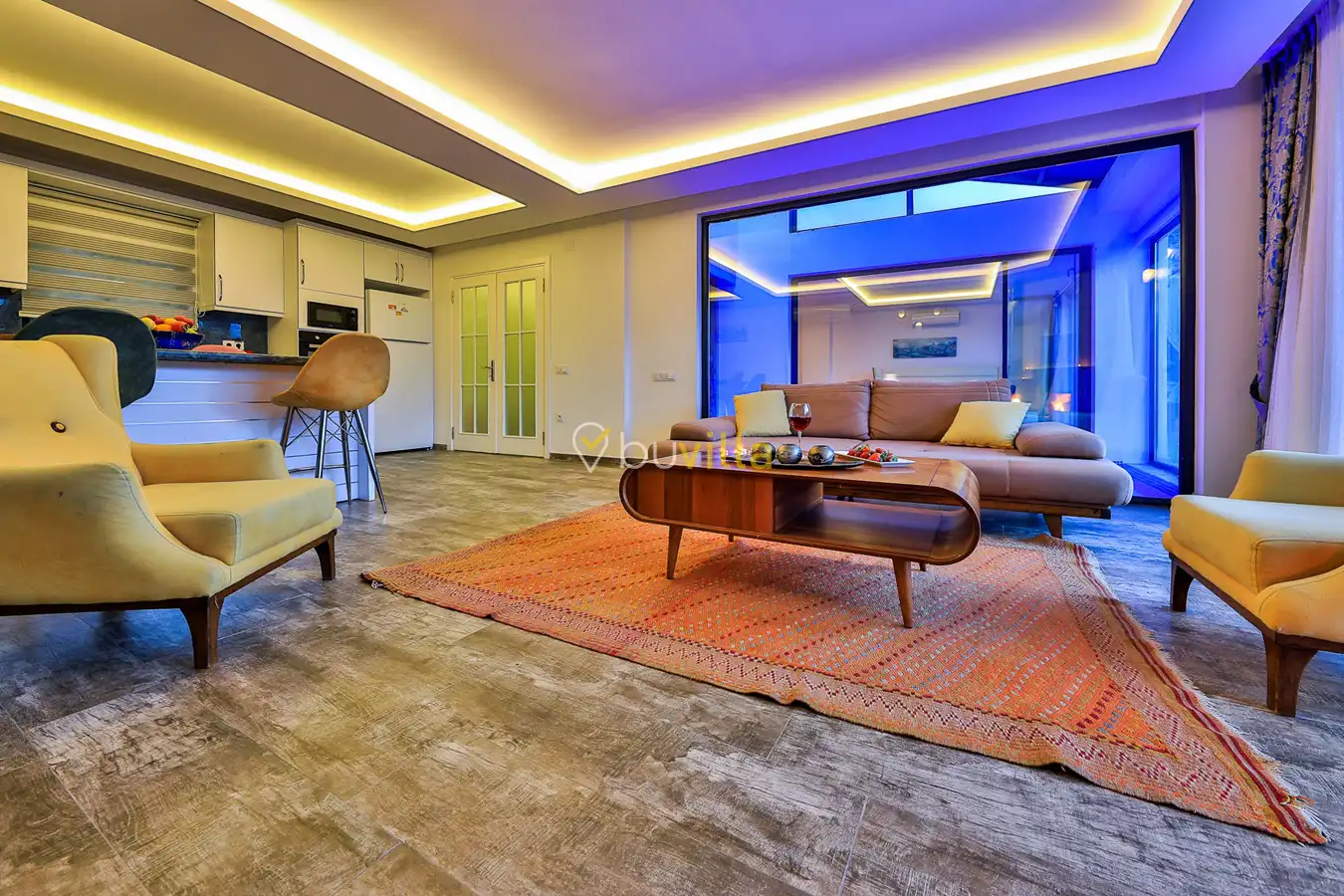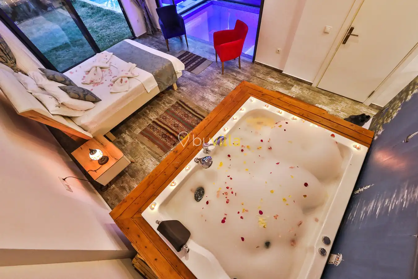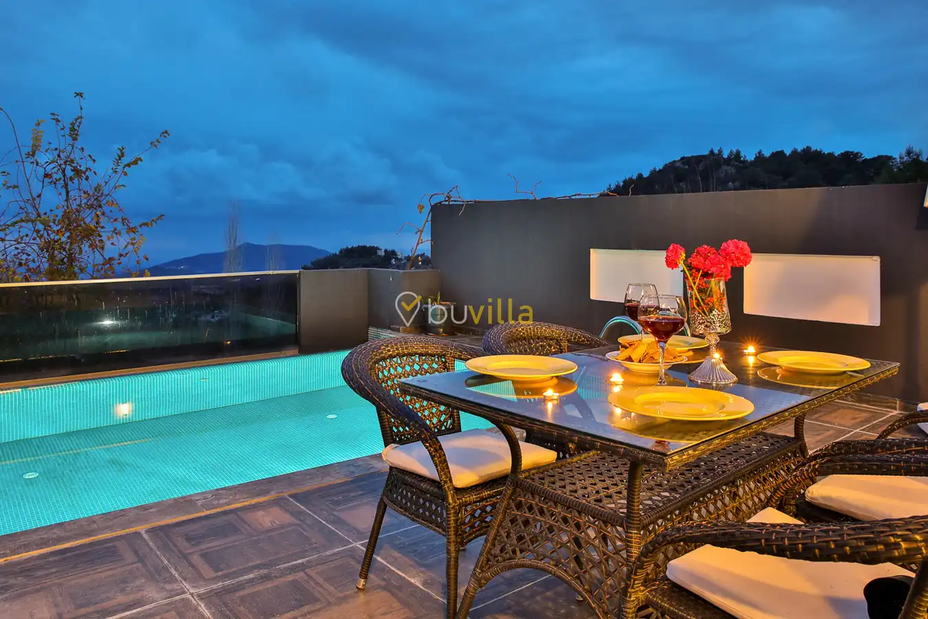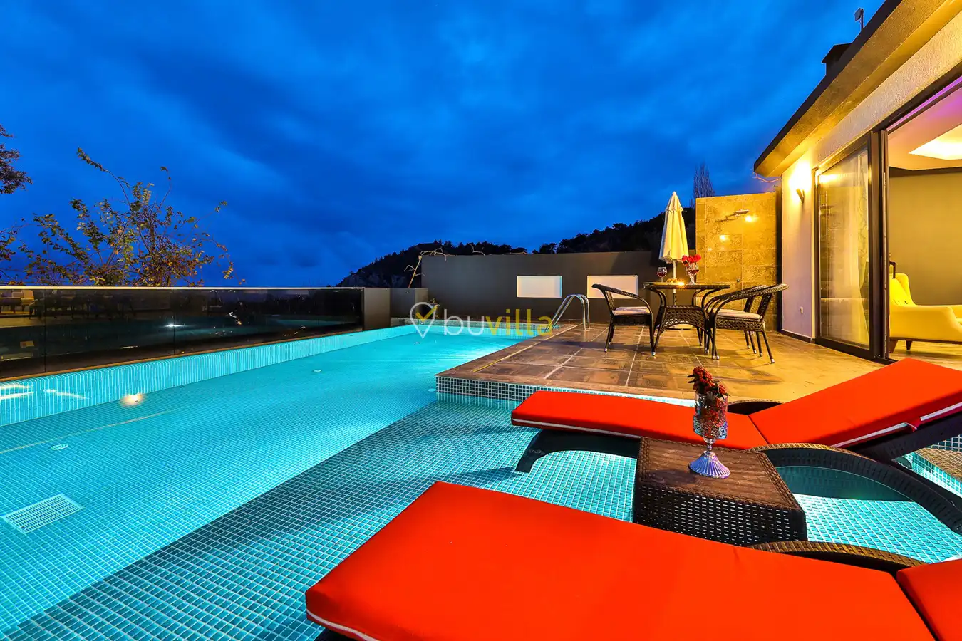 Villanın öne çıkan özellikleri arasında modern ve şık tasarımı, tam donanımlı yaşam alanları ve çiftlerin ihtiyaç duyabileceği tüm olanakların eksiksiz bir şekilde sağlanmış olması yer alır. Jakuzi, kapalı ve ısıtmalı yüzme havuzu gibi lüks detaylar tatilinizi unutulmaz kılarken, yerden ısıtma, petekli ısıtma sistemi ve aktif kullanımlı şömine sayesinde her mevsim konforlu bir tatil geçirebilirsiniz.