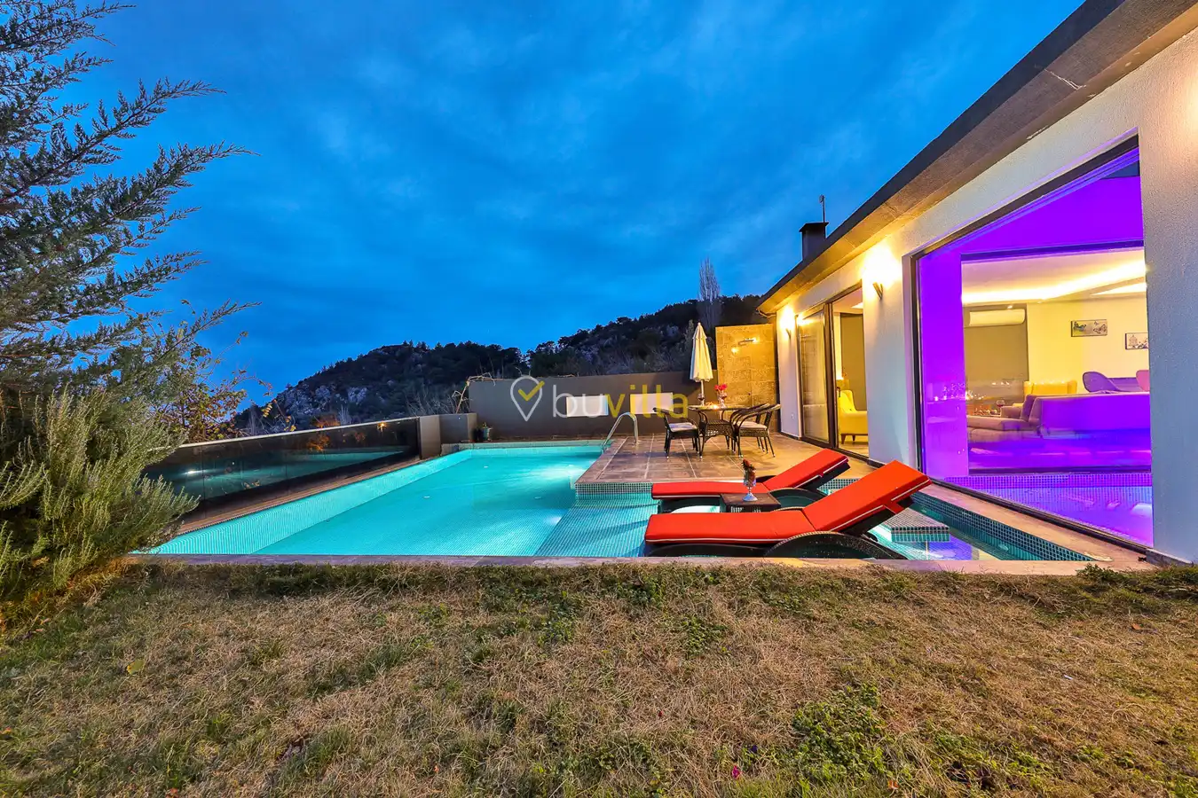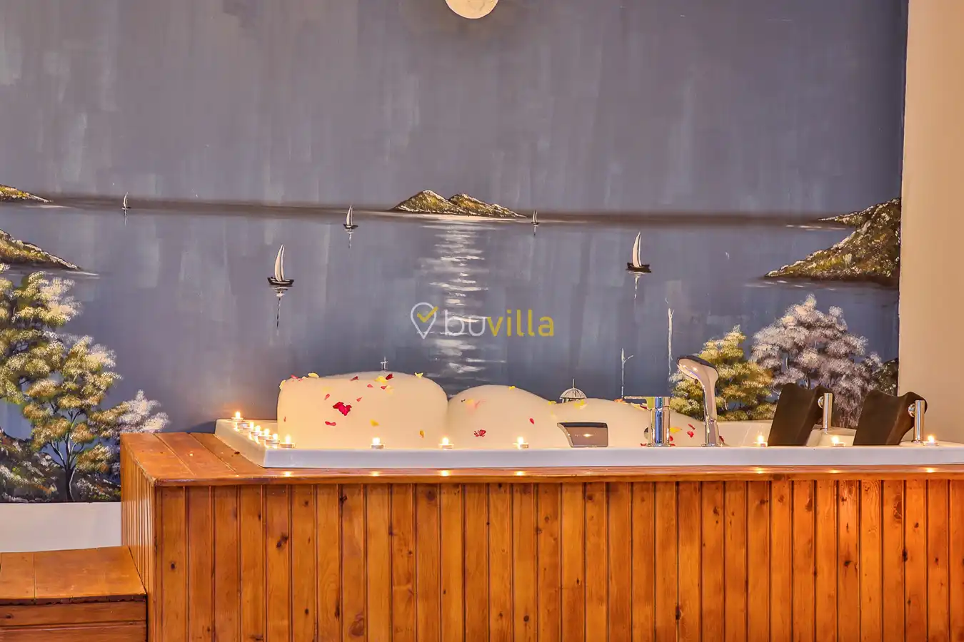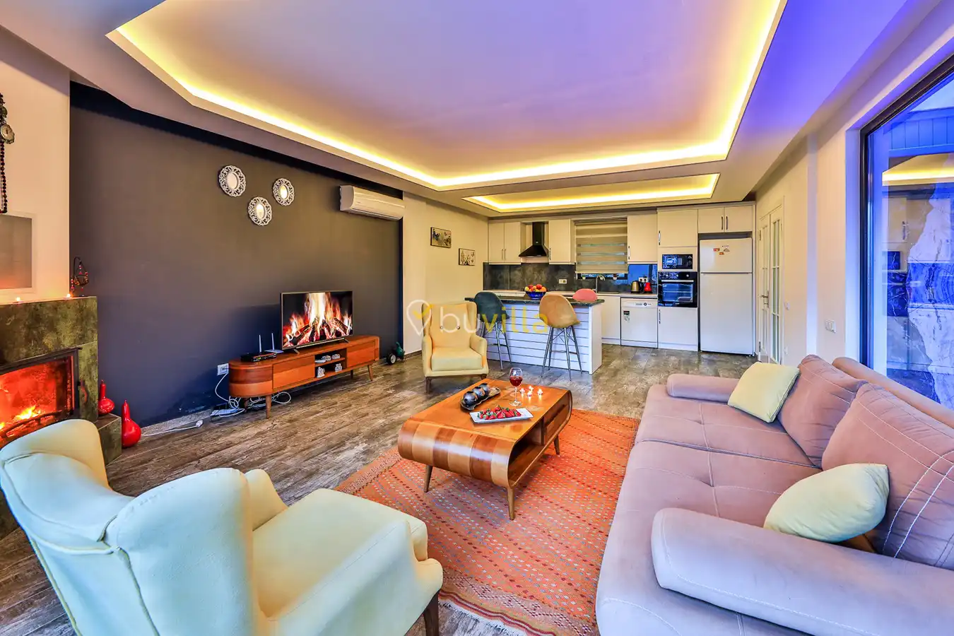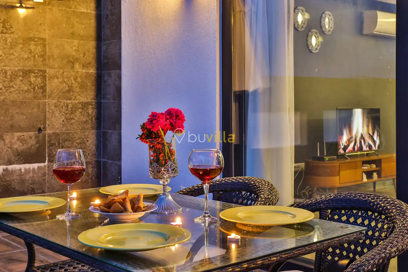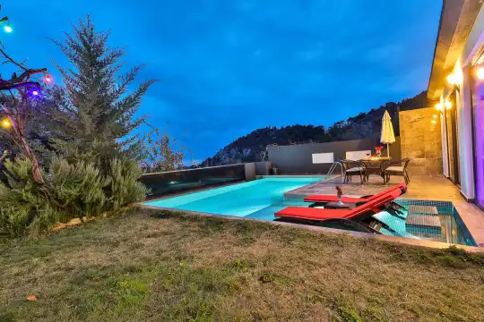 Villanın öne çıkan özellikleri arasında modern ve şık tasarımı, tam donanımlı yaşam alanları ve çiftlerin ihtiyaç duyabileceği tüm olanakların eksiksiz bir şekilde sağlanmış olması yer alır. Jakuzi, kapalı ve ısıtmalı yüzme havuzu gibi lüks detaylar tatilinizi unutulmaz kılarken, yerden ısıtma, petekli ısıtma sistemi ve aktif kullanımlı şömine sayesinde her mevsim konforlu bir tatil geçirebilirsiniz.