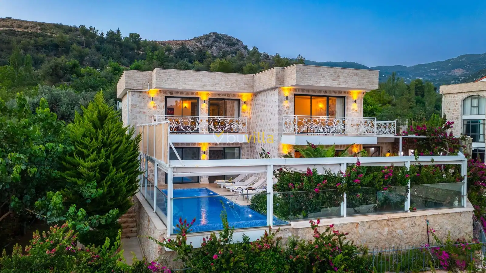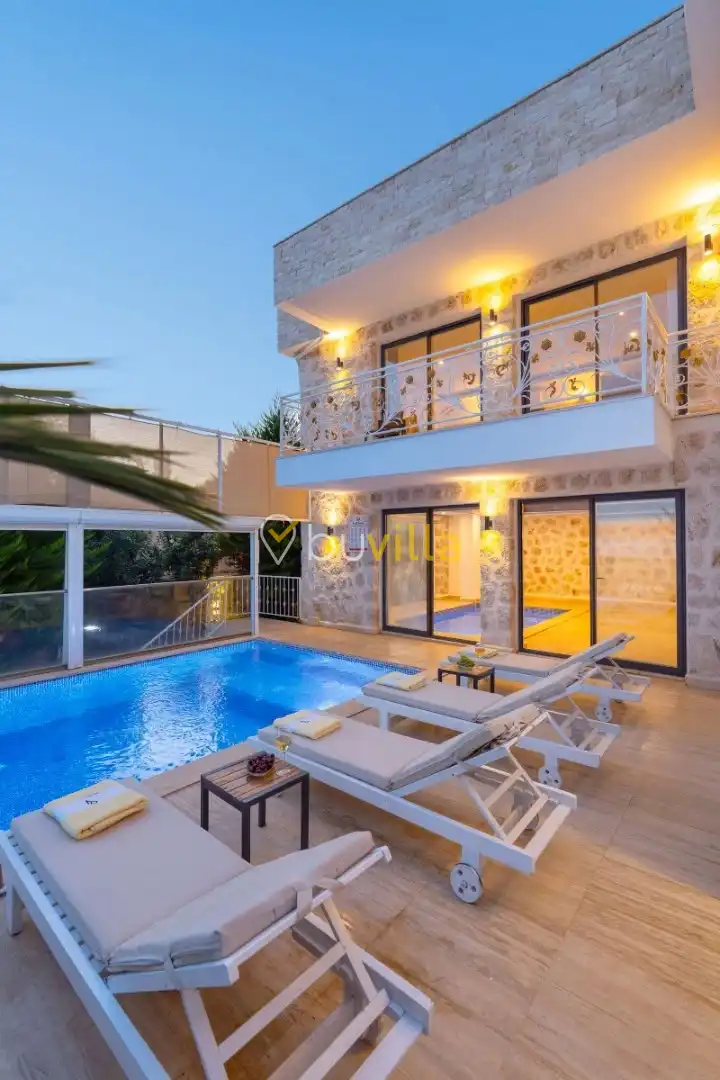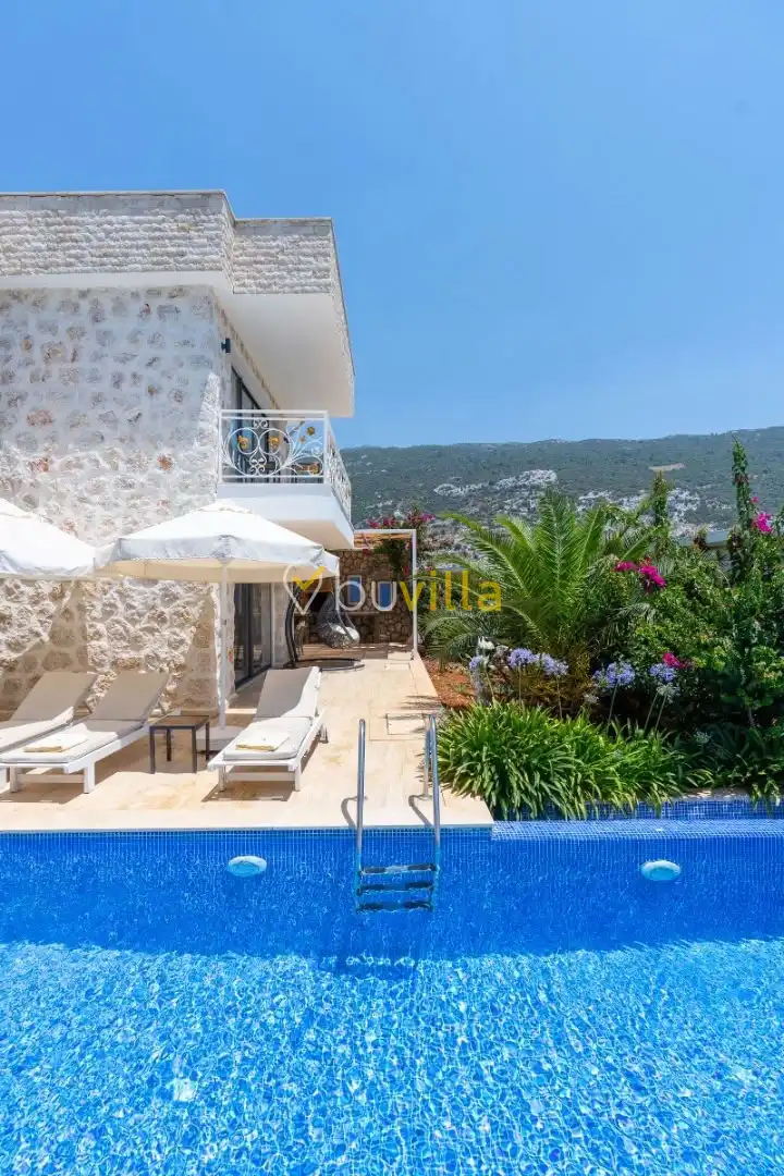 Villa Narin 9, Kalkan’ın huzurlu İslamlar Köyü’nde konumlanan, doğal taş mimarisiyle öne çıkan özel bir balayı tatil villasıdır. Açık mutfaklı salon bölümünde; konforlu oturma grubu, televizyon ve uydu alıcısı yer almakta olup, misafirlerin ihtiyaç duyabileceği tüm detaylar düşünülmüştür. Villaya ait özel yüzme havuzu, dışarıdan görünmeyecek şekilde planlanmış olup mahremiyet arayan misafirler için ideal bir ortam sunar.