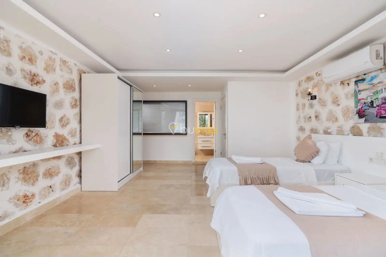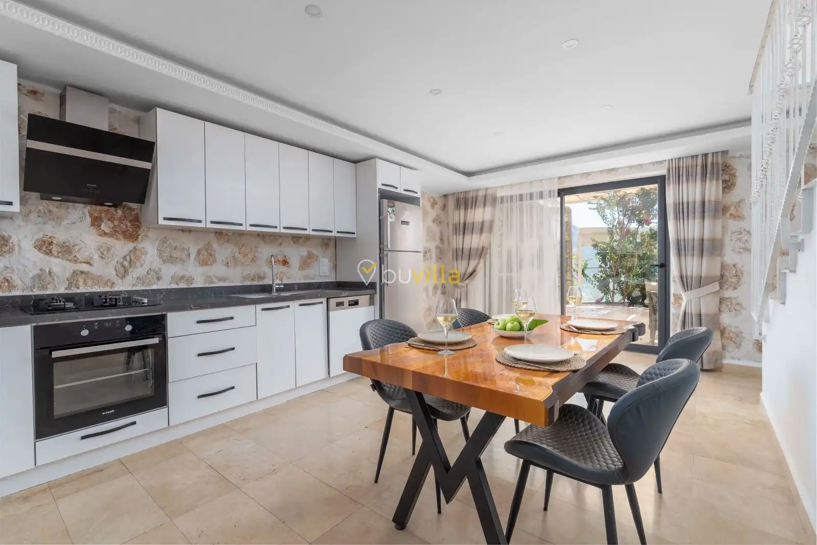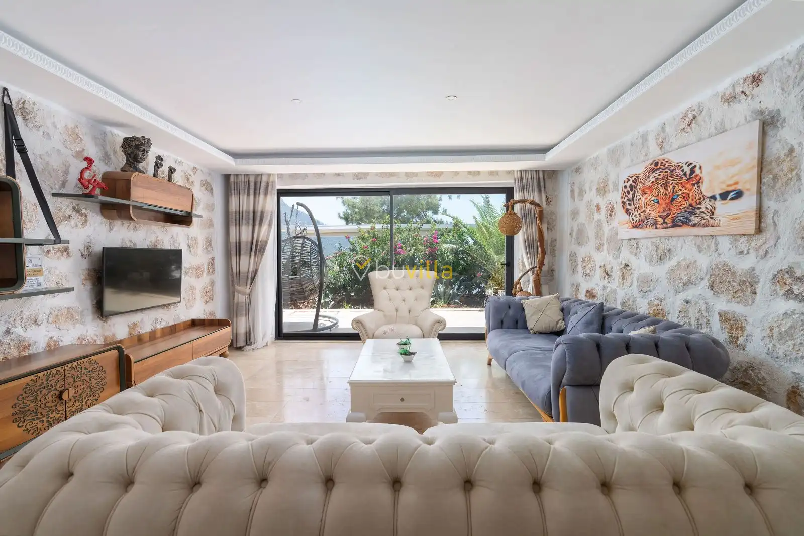 Villa Narin 9, Kalkan’ın huzurlu İslamlar Köyü’nde konumlanan, doğal taş mimarisiyle öne çıkan özel bir balayı tatil villasıdır. Açık mutfaklı salon bölümünde; konforlu oturma grubu, televizyon ve uydu alıcısı yer almakta olup, misafirlerin ihtiyaç duyabileceği tüm detaylar düşünülmüştür. Villaya ait özel yüzme havuzu, dışarıdan görünmeyecek şekilde planlanmış olup mahremiyet arayan misafirler için ideal bir ortam sunar.