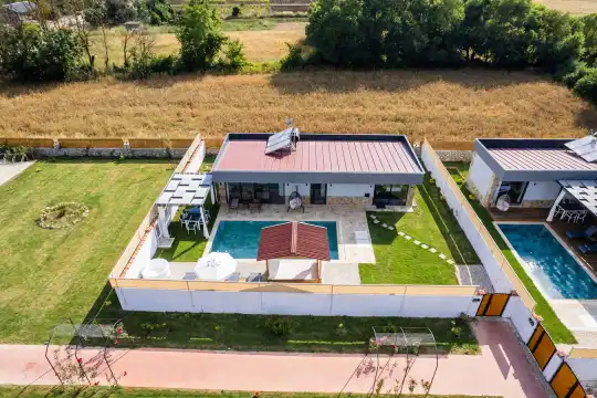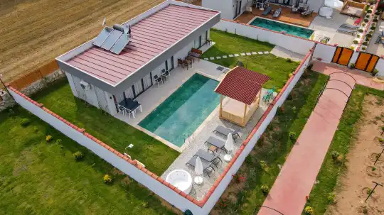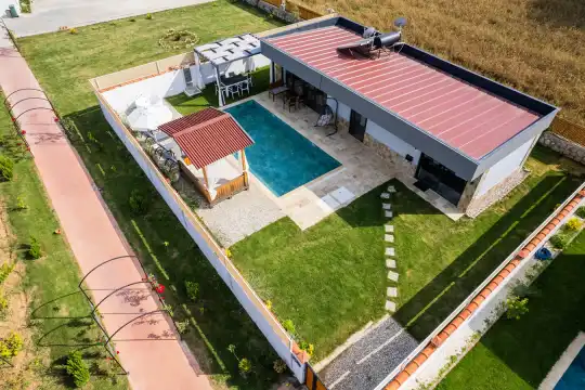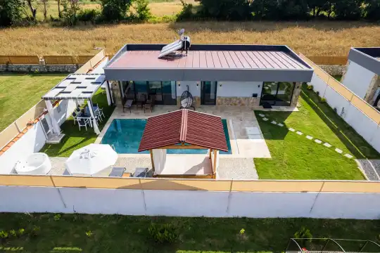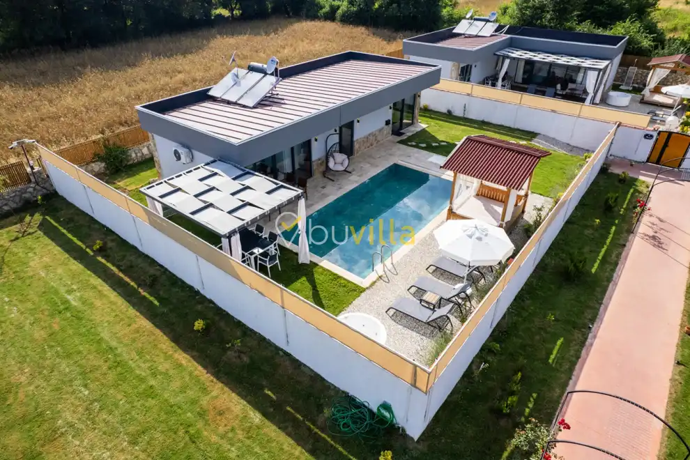 Yeşil Üzümlü’de yer alan bu muhafazakar villa, Fethiye’nin doğal güzellikleri içinde huzurlu ve konforlu bir tatil imkânı sunuyor. 2 yatak odası ve 4 kişilik konaklama kapasitesiyle aileler ve balayı çiftleri için ideal bir seçenektir. Özel yüzme havuzu ve havuz kenarında bulunan jakuzi, misafirlere rahatlatıcı bir deneyim sunarken, dinlenme köşkü ve geniş bahçe alanı doğayla iç içe bir tatil imkânı sağlar. Modern ve şık tasarımıyla konforu ön planda tutan villamız, sakinlik arayan ve gözlerden uzak bir tatil geçirmek isteyen misafirler için mükemmel bir kaçış noktasıdır.