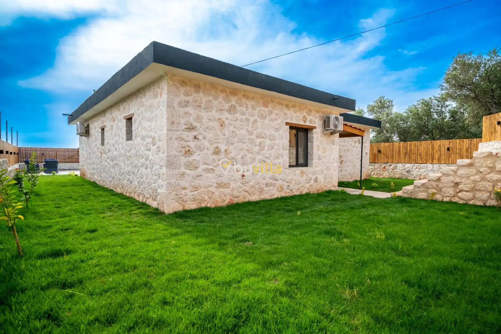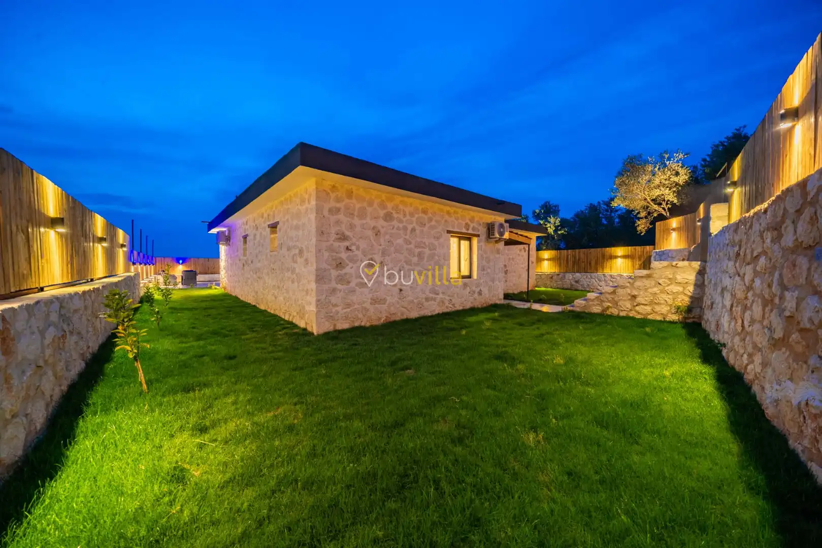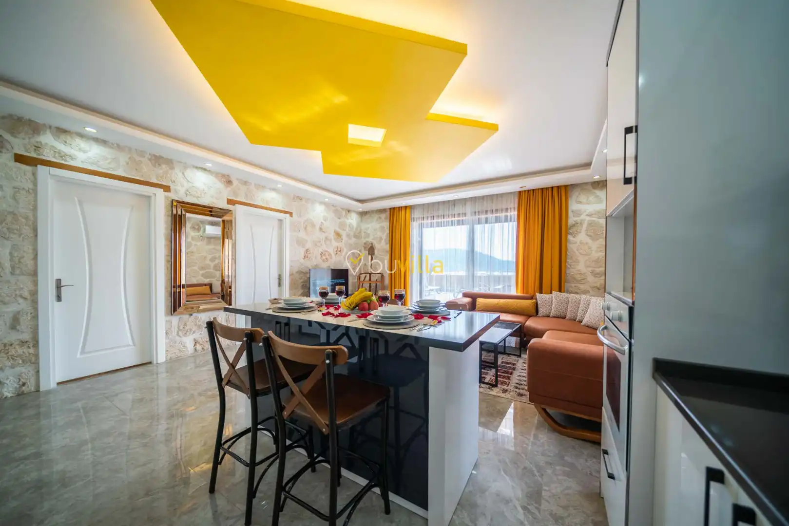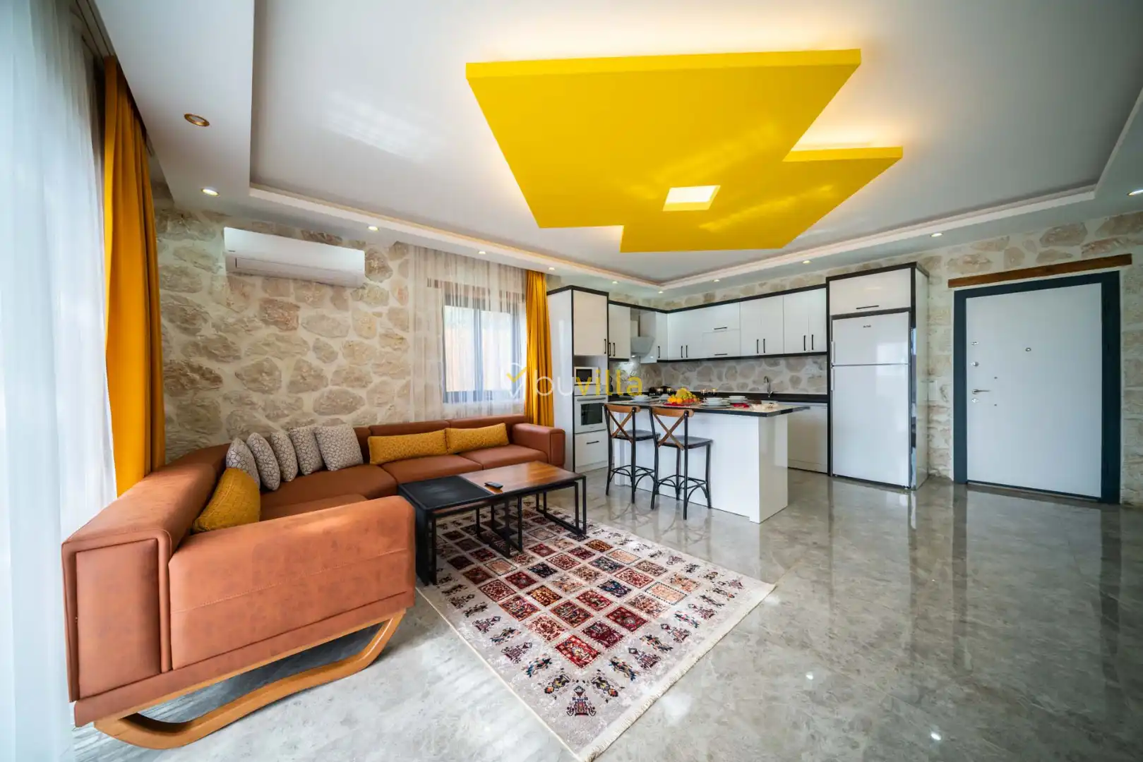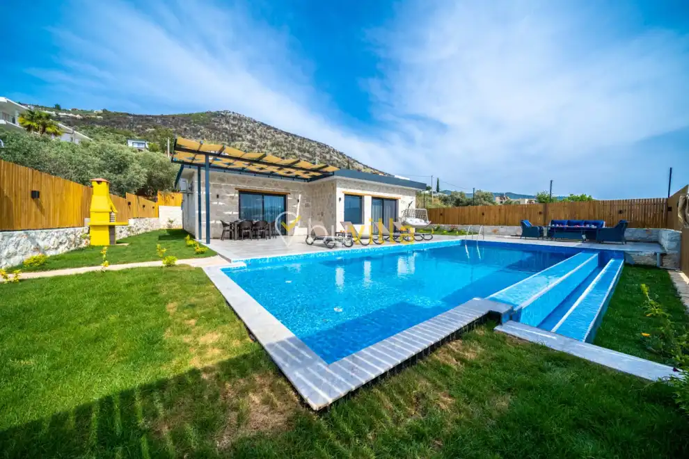 Kalkan’ın doğasıyla büyüleyen bölgelerinden Yeşilköy’de konumlanan bu özel villa, eşsiz doğa manzarası ve huzur dolu atmosferiyle adeta bir cennet köşesini andırmaktadır.