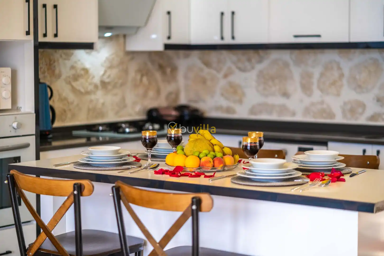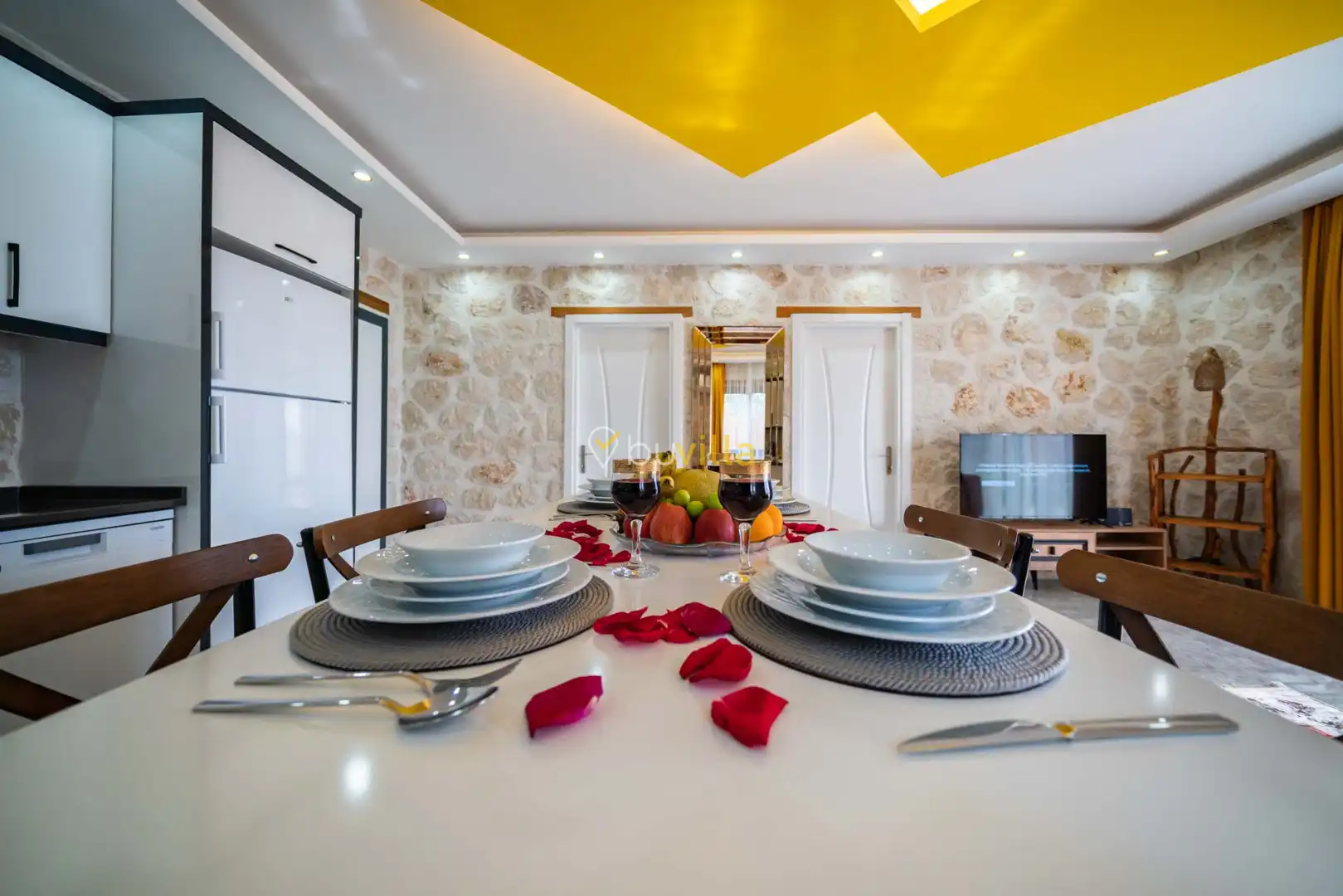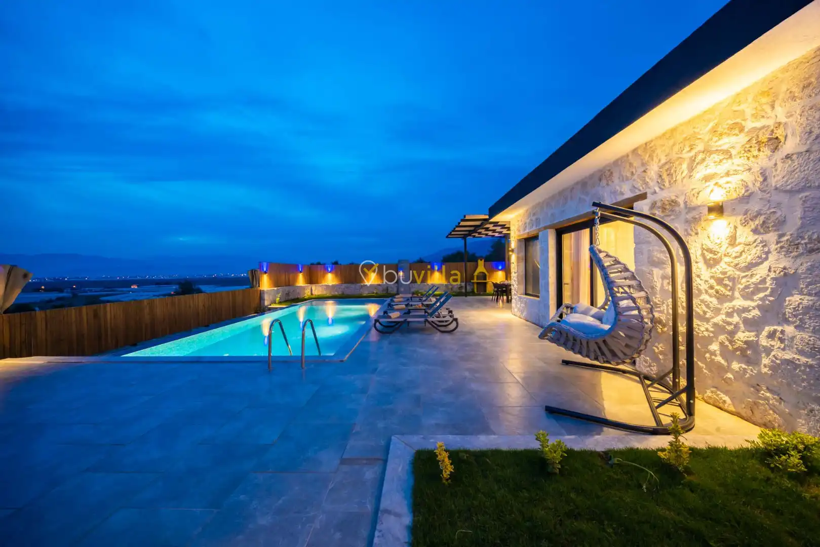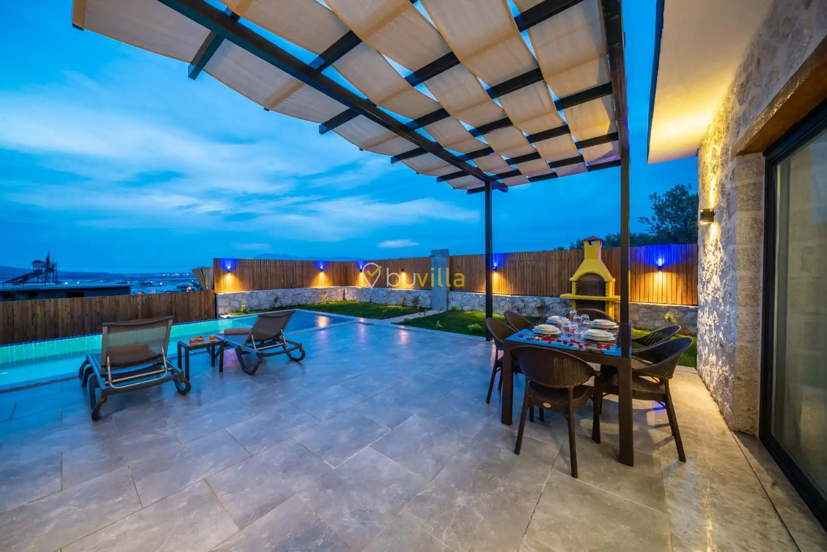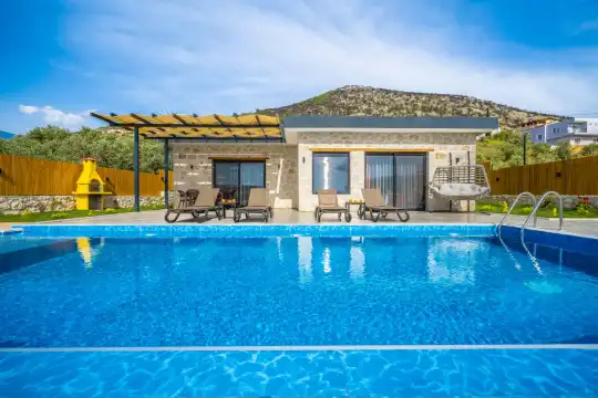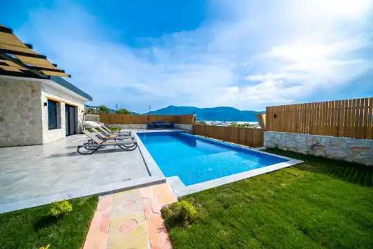 Kalkan’ın doğasıyla büyüleyen bölgelerinden Yeşilköy’de konumlanan bu özel villa, eşsiz doğa manzarası ve huzur dolu atmosferiyle adeta bir cennet köşesini andırmaktadır.