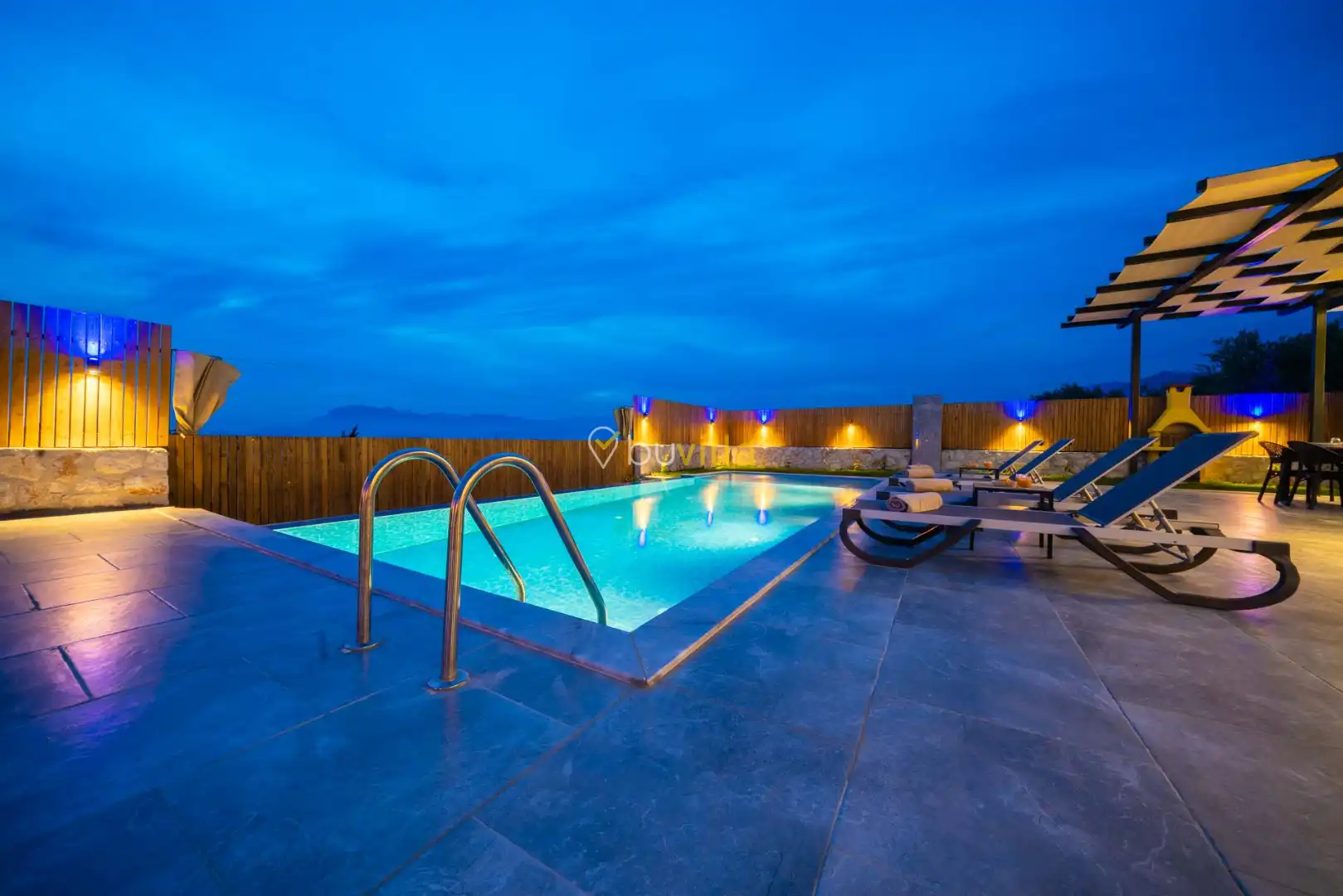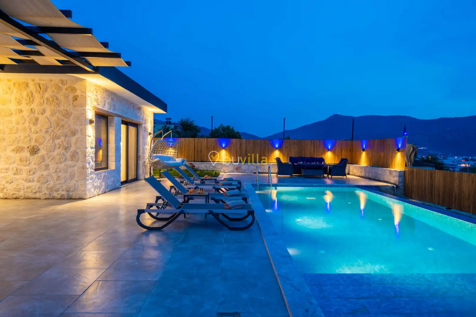 Doğa ile iç içe, sakin ve gözlerden uzak bir tatil arayan misafirler için özenle tasarlanan villamız, huzurlu ve unutulmaz bir konaklama imkânı sunmaktadır. Kalkan’da villa kiralama düşünenler için ideal bir seçenek sizleri bekliyor.