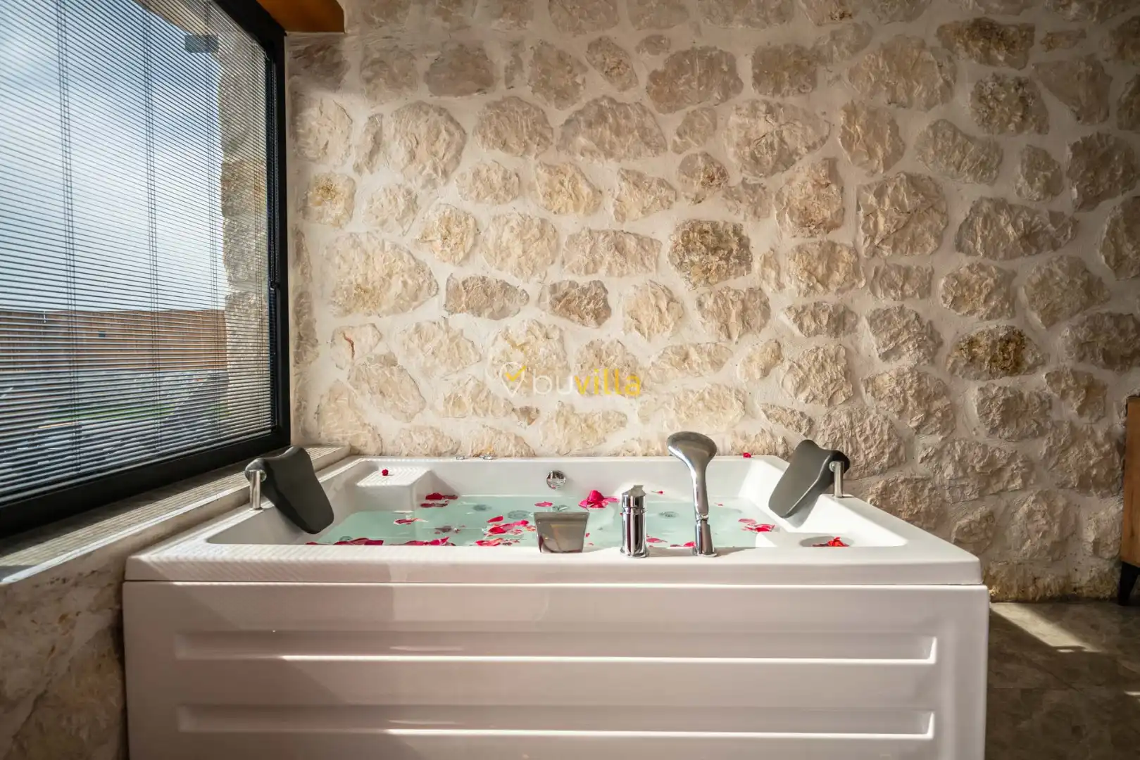 4 kişilik konaklama kapasitesine sahip olan villamız; geniş bahçesi, özel yüzme havuzu ve konforlu yaşam alanlarıyla keyifli bir tatil deneyimi sunar. Yatak odasında bulunan jakuzi ise tatilinize ekstra rahatlık katmaktadır.