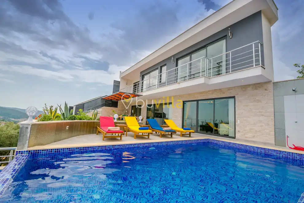 Deniz Manzarali Villa Kiralik Villa Nature Kalkan Akbel mevkiinde 4 yatak odali 8 kisi kapasitesindedir. Genis kapasiteli lüks kiralik villa kalabalik aile ve arkadas gruplari için ideal bir tercihtir. Yüksek konumu ile muhtesem adalar ve deniz manzarasi bulunan kiralik villa da gün batimini seyredebilir özel havuzunda keyifli vakit geçirebilirsiniz. Ihtiyaç duyabileceginiz tüm detaylar düsünülen kiralik villa Nature misafirlerini agirlamayi beklemektedir.