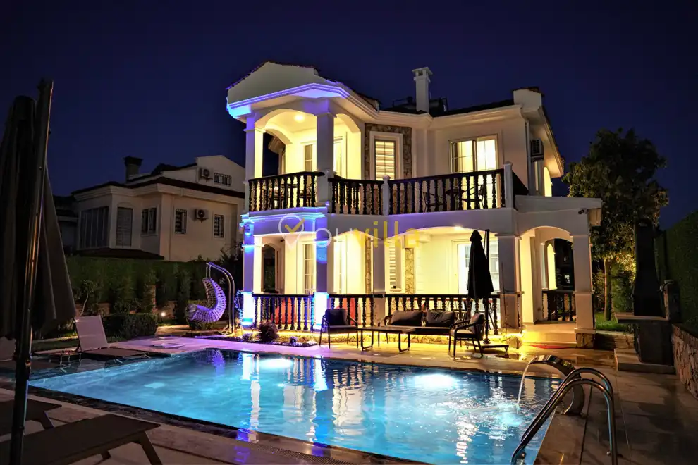 Özel Havuzlu Villa Kiralik Villa Nazende , Fethiye Çalis mevkiinde 4 yatak odali 8 kisi konaklama kapasitesine sahiptir. Kiralik villamiz genis bahçe ve havuz terasina sahiptir. Oldukça konforlu dizayn edilmis olan kiralik villamiz kalabalik aile ve arkadas gruplari için uygun bir seçenektir. Denize yakin bir lokasyon da bulunan kiralik villamiz misafirlerini agirlamayi beklemektedir.