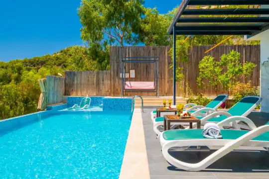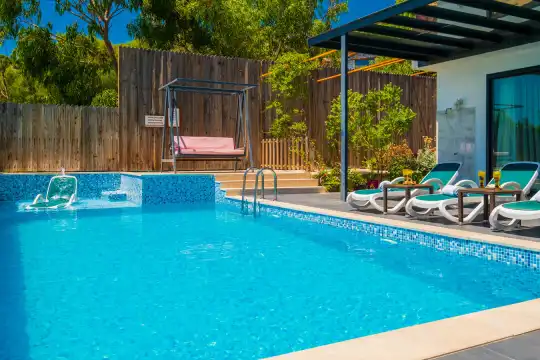 Müstakil yapıya sahip olan villamızın özel yüzme havuzu, dışarıdan görünmeyecek şekilde tasarlanmış olup misafirlerine rahat ve özgür bir kullanım alanı sağlar. Modern ve şık detaylarla dekore edilen Villa Nehir, 2 yatak odasıyla toplam 4 kişilik konaklama kapasitesine sahiptir.