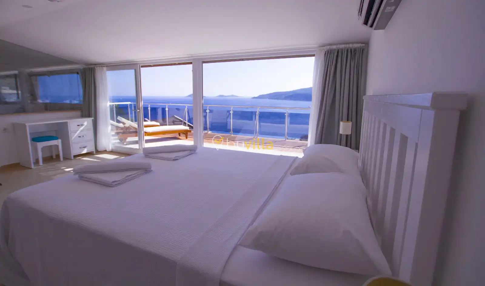 Kalkan Kalamar Mevkii'nde yer alan Villa Neo, modern tasarımı ve lüks olanakları ile unutulmaz bir tatil deneyimi sunmaktadır. Eşsiz deniz manzarası ve konforlu yaşam alanları ile dikkat çeken villamız, 6 kişilik konaklama kapasitesine sahip olup, 3 yatak odası ve her odada özel banyo bulunmaktadır.