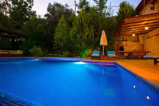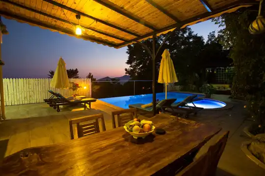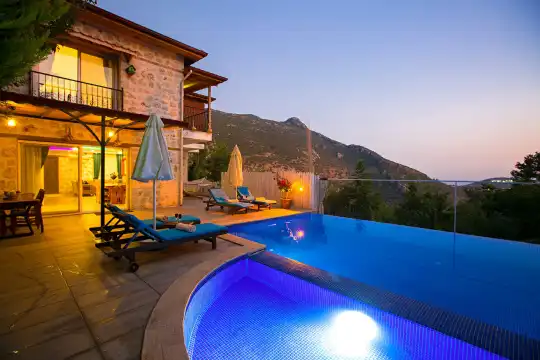 Muhafazakar Balayi Villasi Kiralik villa Niraya Kalkan Islamlar mevkiindedir. 2 yatak odali olup 5 kisiliktir. Ana yatak odasinda jakuzi bulunmaktadir. Doga ile iç içe buluna kiralik villamiz korunakli hale getirilmis muhafazakar kiralik villa tercihleri arasindadir. Sakin huzurlu bir tatil firsatini sunmakta olan kiralik villa essiz bir tatil firsati sunmaktadir.