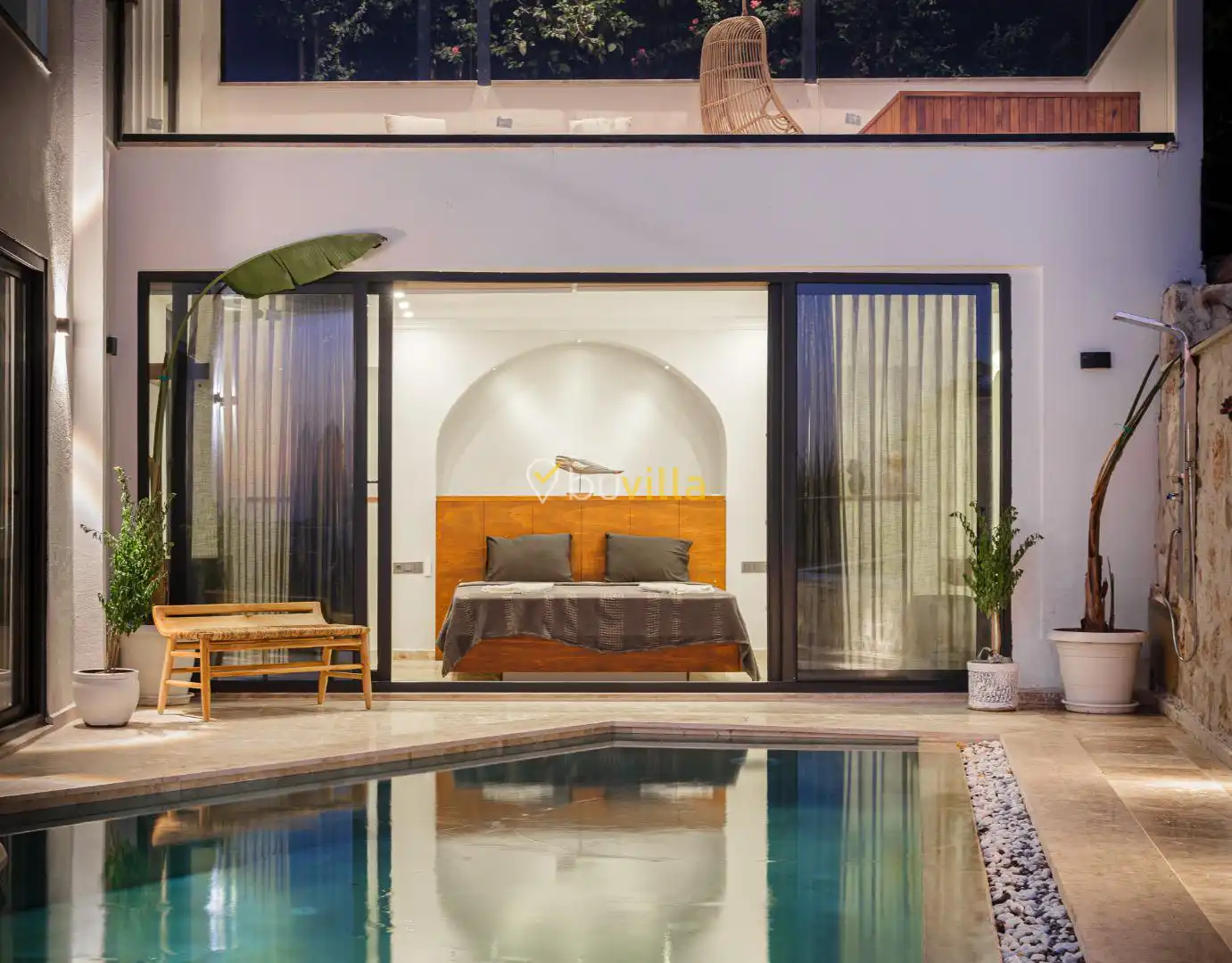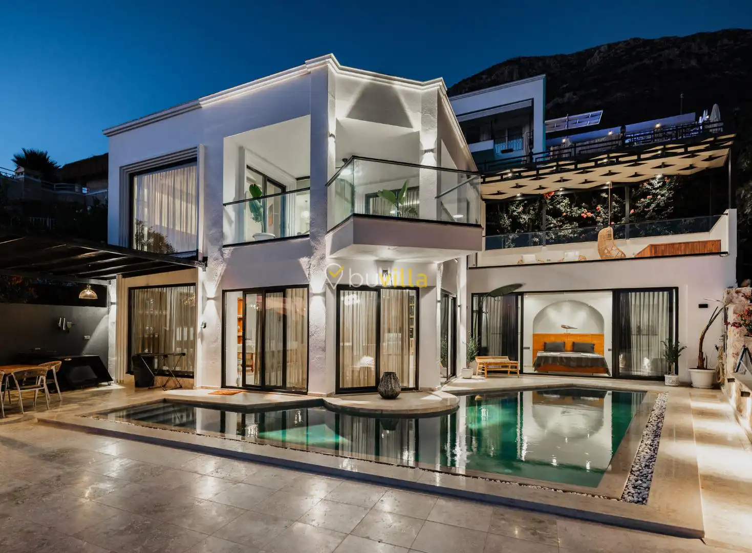 Villa Nisa Kalkan, Kaş Kalkan bölgesinde, Kördere mevkiinde (Bezirgan Mahallesi) konumlanan, konforlu ve modern bir kiralık tatil villasıdır.