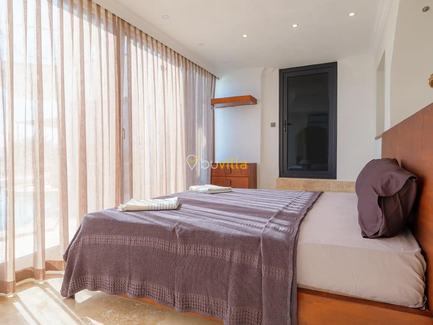 Toplam 4 suit yatak odasına sahip olan villamız, 8 kişiye kadar konaklama kapasitesi ile geniş aileler ve arkadaş grupları için ideal bir tatil seçeneği sunmaktadır. Tüm yatak odalarında özel banyo–WC ve klima bulunmakta olup, misafirlerin konforu ön planda tutulmuştur. Ayrıca yatak odalarından birinin özel terasında yer alan jakuzi, tatilinize keyifli ve dinlendirici bir ayrıcalık katmaktadır.