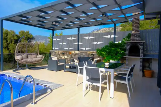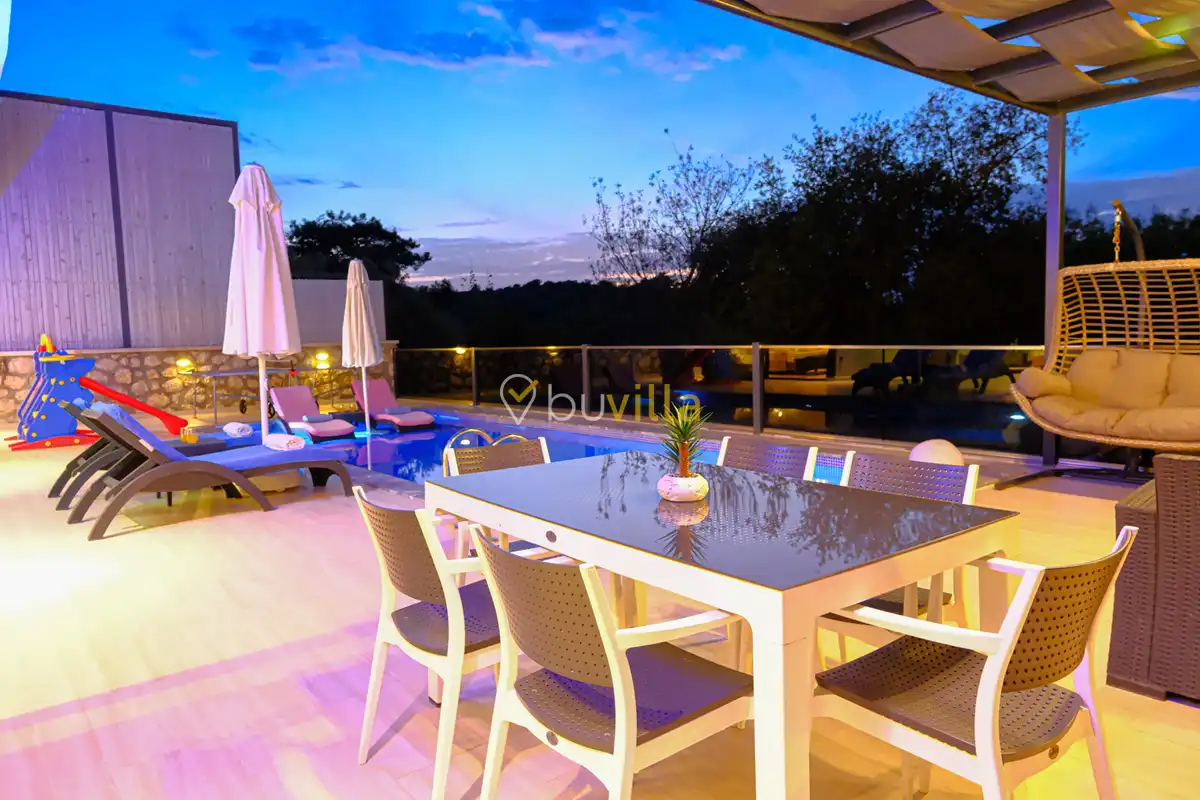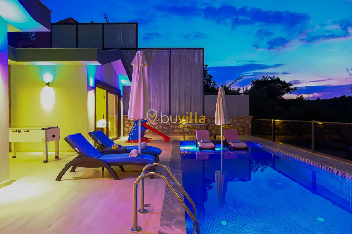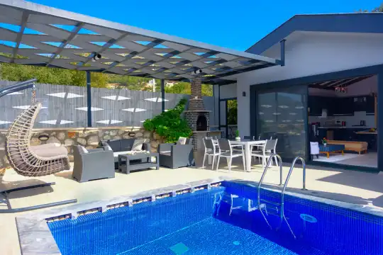 Villa Nokta, Kalkan’ın doğasıyla öne çıkan Üzümlü bölgesinde konumlanan, huzurlu atmosferi ve zengin donanımıyla dikkat çeken özel bir kiralık villadır. 2 yatak odalı olan villamız, 4 kişilik konaklama kapasitesi ile balayı çiftleri, muhafazakâr misafirler ve arkadaş grupları için ideal bir villa tatili sunar.