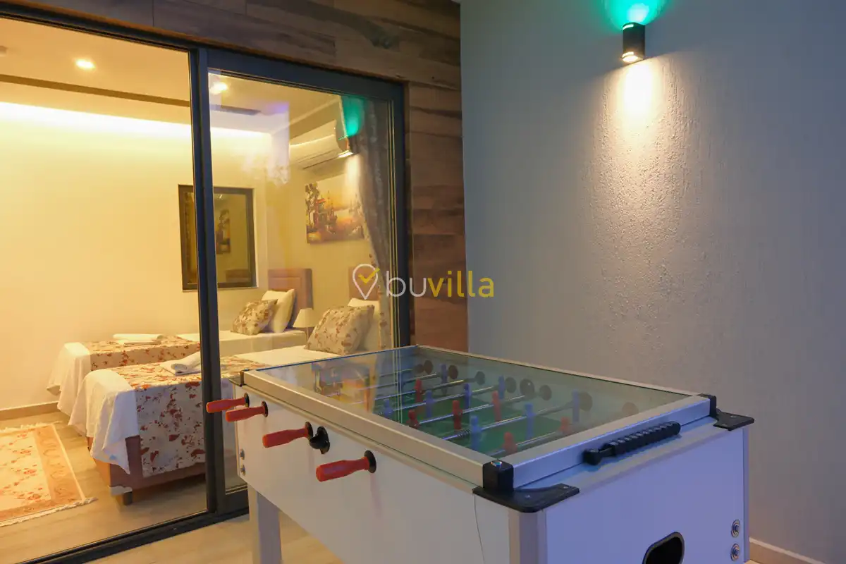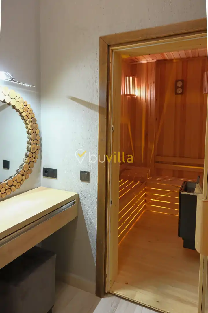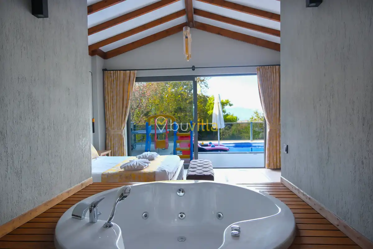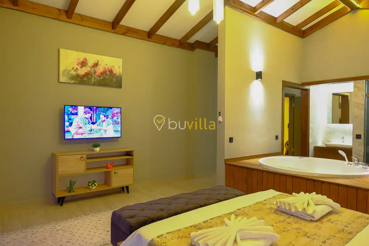 Doğa içerisinde yer alan Villa Nokta, ferah yapısı ve doğa manzarası ile şehir hayatının stresinden uzak, sakin bir tatil imkânı sağlar. Villanın suit yatak odasında bulunan jakuzi, günün yorgunluğunu atmanız için konforlu bir alan sunarken; hamam ve sauna gibi ayrıcalıklı olanaklar tatilinize keyif ve rahatlık katar.