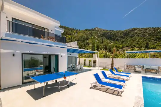 Kalkan İslamlar bölgesinde konumlanan bu özel tatil villası, 4 kişilik konaklama kapasitesi ile çekirdek aileler ve muhafazakar tatil anlayışını tercih eden misafirler için ideal bir seçenektir. Yemyeşil doğa manzarası eşliğinde huzurlu bir atmosfer sunan villamız, iki katlı yapısı ve konfor odaklı dekorasyonuyla keyifli bir tatil deneyimi vadeder.