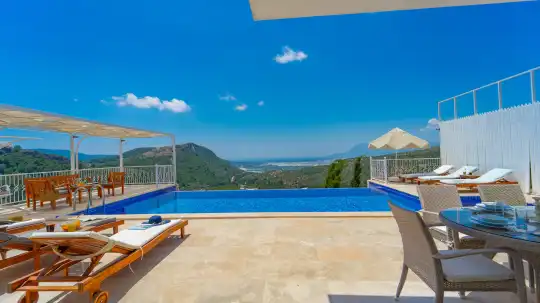 Kalkan Üzümlü mevkinde 3 yatak odali 6 kisi kapasitesindedir. Kiralik villa doga içerisinde muhtesem manzarasi bulunmaktadir. Ihtiyaç duyabileceginiz her türlü ekipman bulunan kiralik villa konforlu dizayni ile göze çarpmaktadir. Özel yüzme havuzlu kiralik villa muhafazakâr aile ve arkadas gruplari için uygun seçenektir. Muhtesem tatil firsati sunan kiralik Villa Oscar misafirlerini agirlamayi beklemektedir.