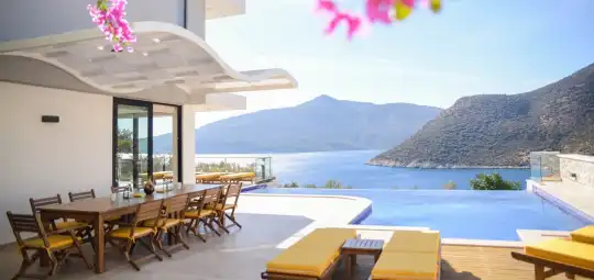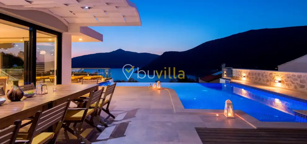 Deniz Manzarali Lüks Villa Kiralik Villa Oswald , Kalkan Kalamar mevkiisinde yer almaktadir. 5 yatak odali 10 kisiye kadar konaklama imkani sunan lüks villamiz kalabalik aileler ve arkadas gruplari için idealdir. Denize oldukça yakin konumda olan villamiz muhtesem deniz manzarasiyla tatilinizi taçlandiracaktir. Modern Amerikan mutfaginda ihtiyaç duyabileceginiz tüm ekipmanlar yer almakda olup konforlu mobilyalarla dizayn edilmis salonu hizmetinizdedir.