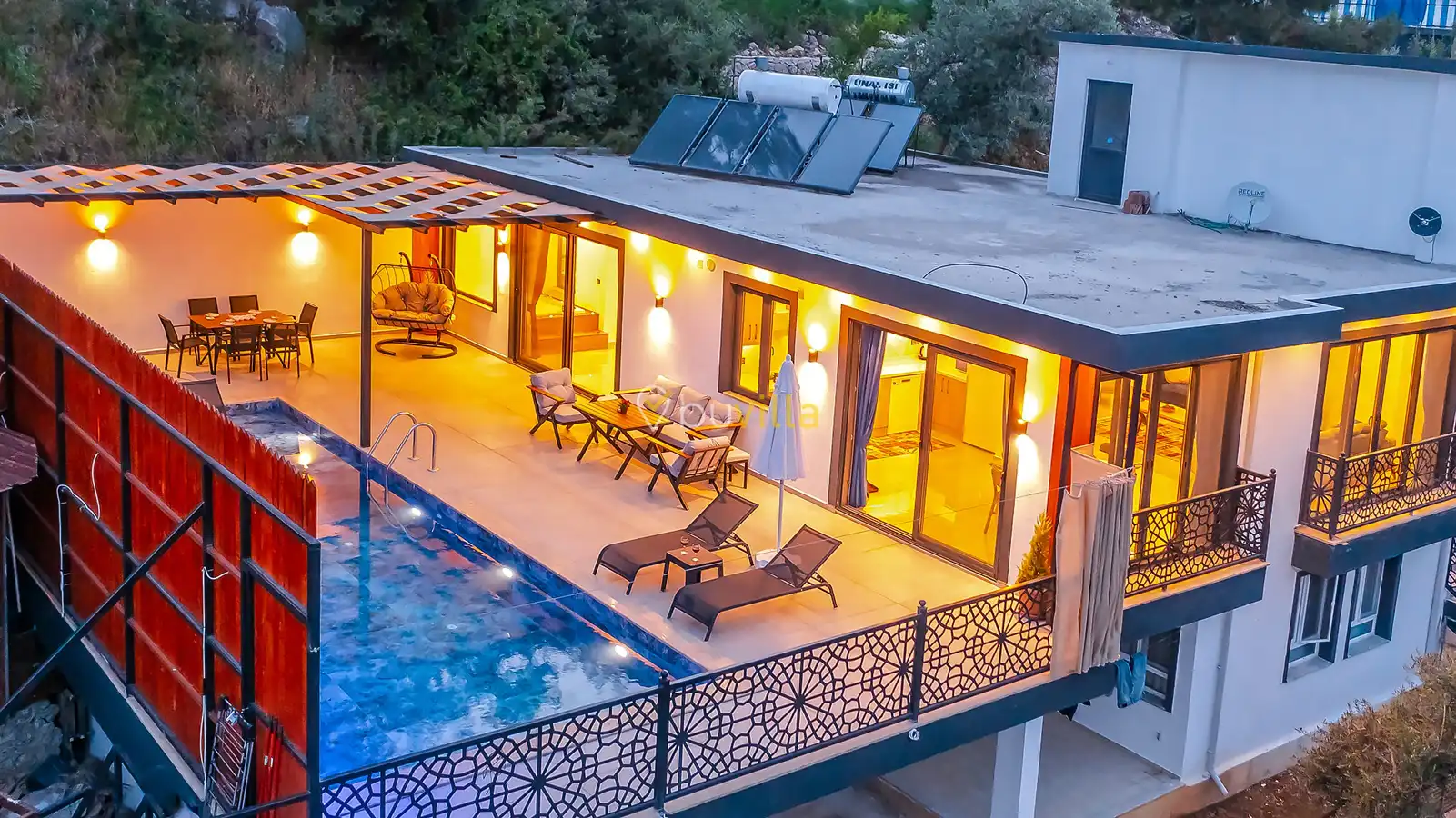 Kalkan İslamlar bölgesinde konumlanan Villa Özüm, doğa içerisinde huzurlu bir tatil arayan misafirler için tasarlanmış lüks ve modern bir tatil villasıdır. 2 yatak odasına sahip olan villamız, 4 kişi konaklama kapasitesiyle çekirdek aileler ve çiftler için konforlu bir konaklama imkânı sunmaktadır.