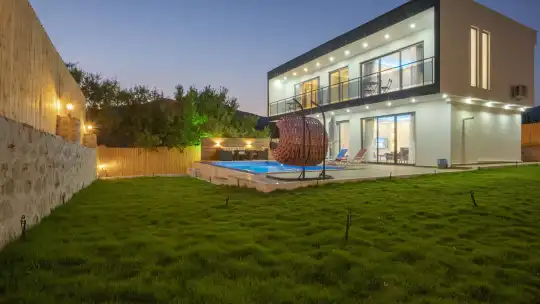 Villa Palas, Kalkan’ın Sarıbelen bölgesinde, doğa manzarasına hâkim konumda yer alan, iki katlı ve tam donanımlı lüks bir tatil villasıdır. 2 yatak odası ve 4 kişilik konaklama kapasitesi ile özellikle balayı çiftleri ve çekirdek aileler için ideal bir konaklama seçeneği sunar. Bahar ve kış aylarında tercih edilmesini sağlayan ısıtmalı kapalı havuzu, villayı dört mevsim tatil için uygun hâle getirmektedir.
