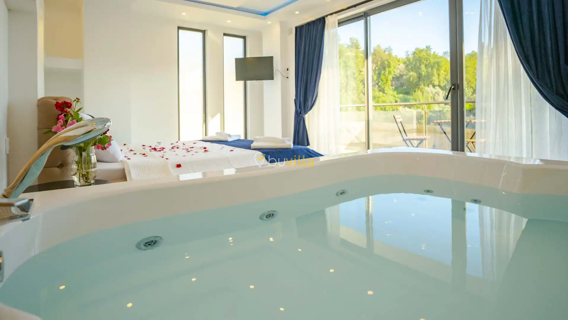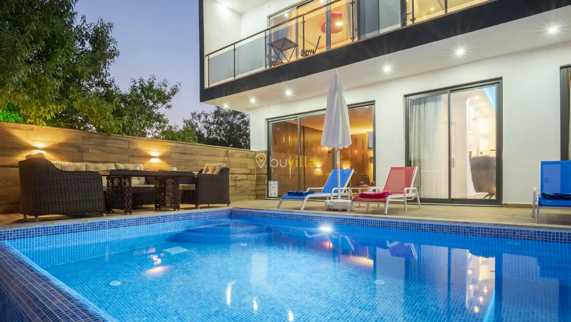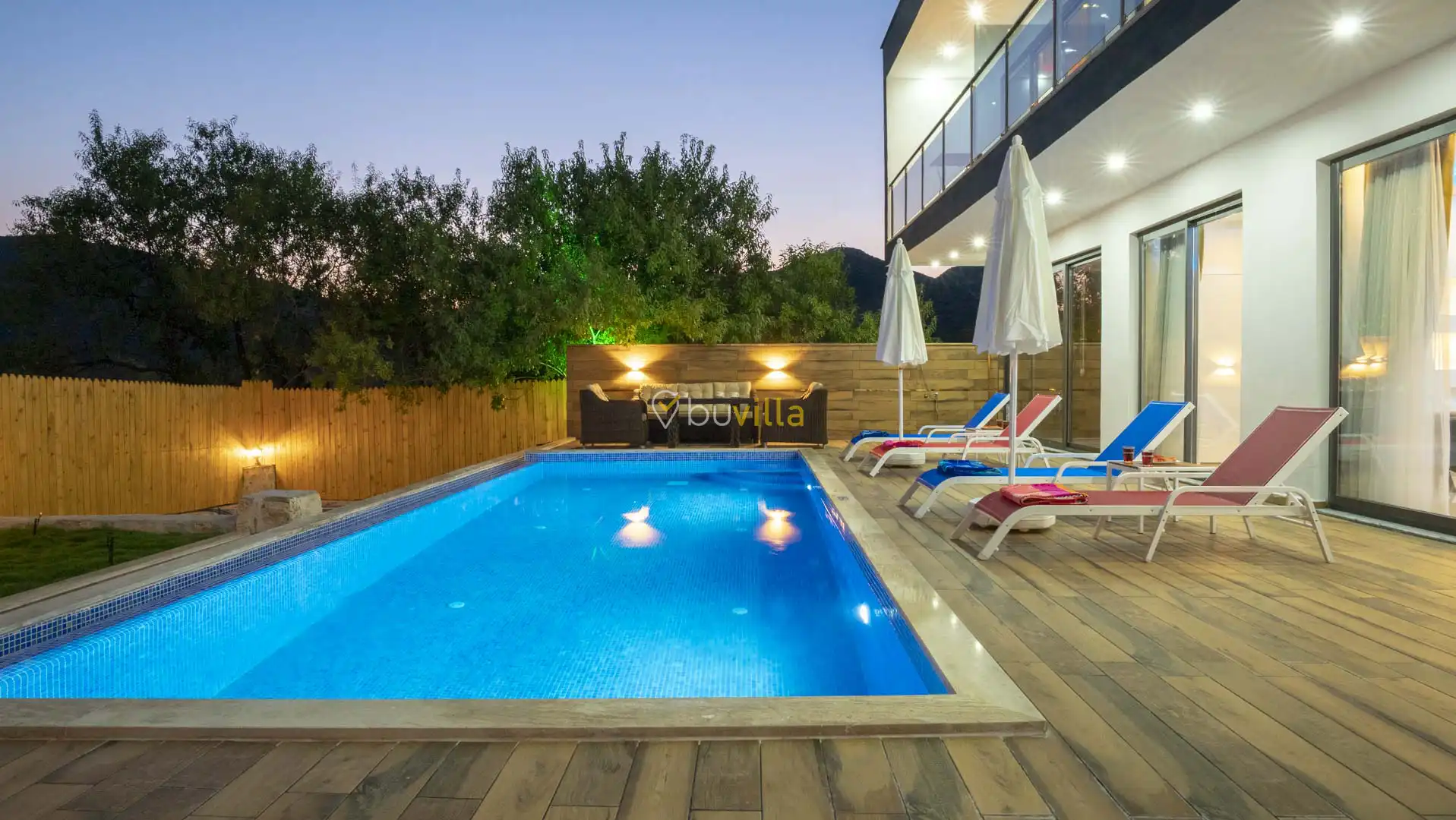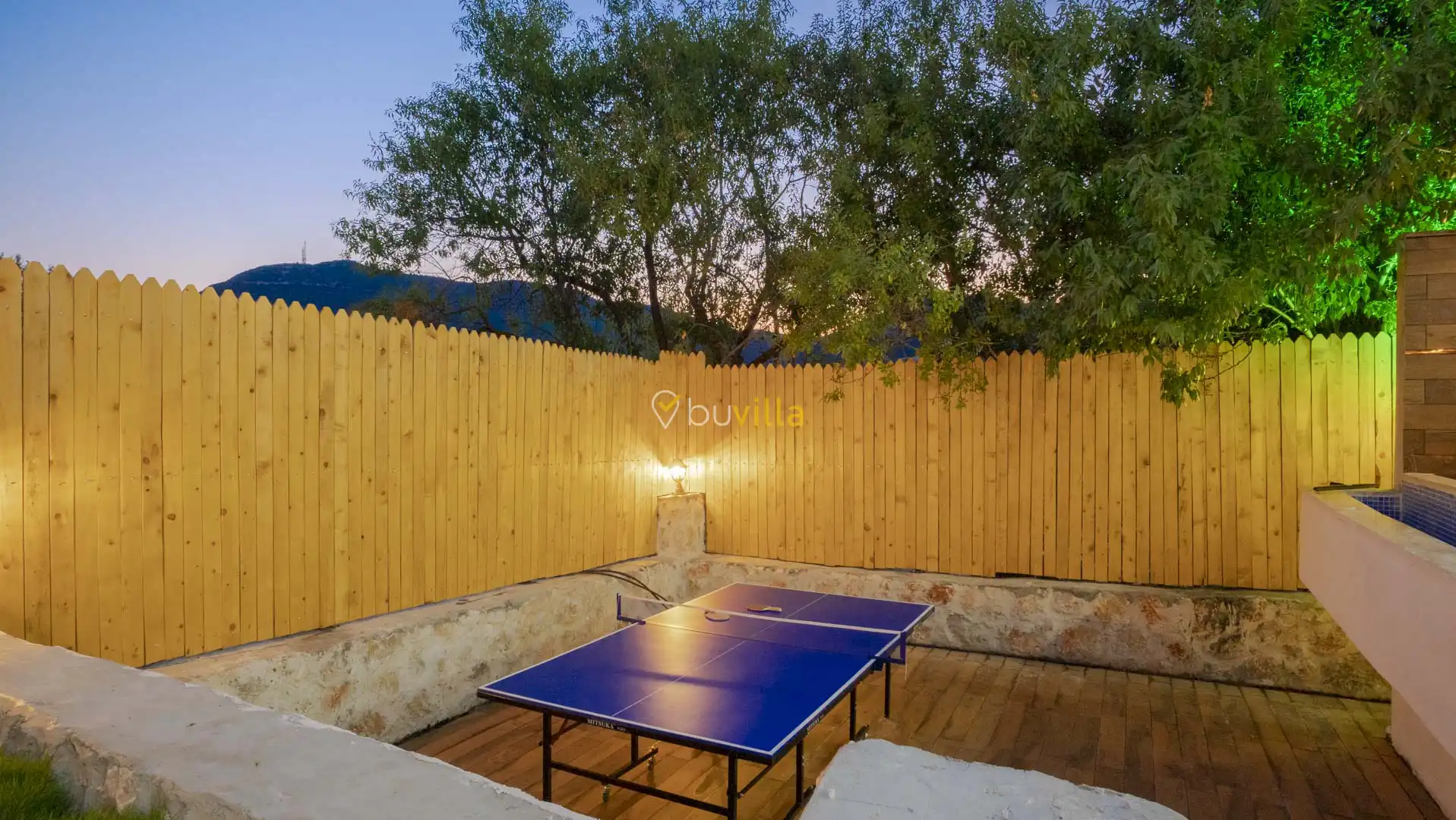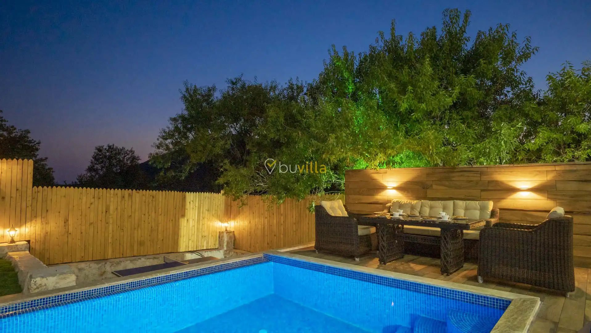 Korunaklı ve geniş bahçe alanında; özel yüzme havuzu, şezlonglar, güneş şemsiyeleri, salıncak, oturma köşesi, masa tenisi, yemek masası ve barbekü alanı bulunmaktadır. İç mekânda yer alan jakuzi ve kapalı ısıtmalı havuz, tatilinize ekstra konfor ve keyif katar.