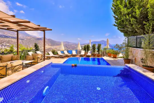 Villanın özel yüzme havuzu ve çocuk havuzu, her yaştan misafire konforlu bir tatil sunarken, özel bahçesinde yer alan trambolin ve hamak keyif dolu anlar yaşamanıza olanak tanır. Denize yakın konumuyla Kalkan’ın eşsiz güzelliklerine kolay erişim imkânı sunan Villa Panorama 2, geniş aileler ve arkadaş grupları için ideal bir tatil seçeneğidir.