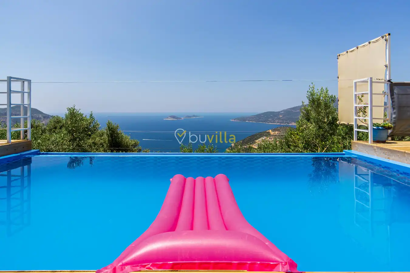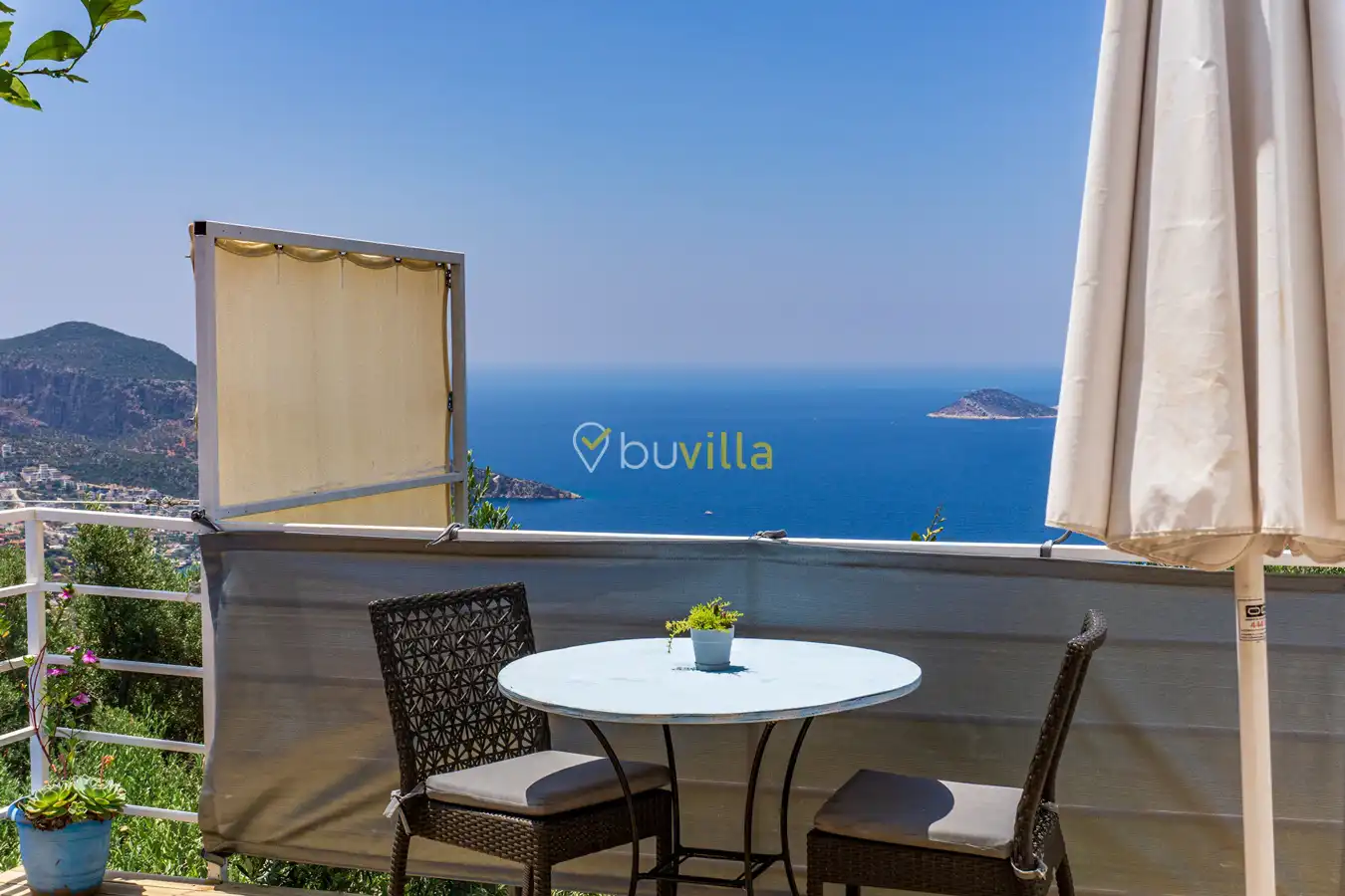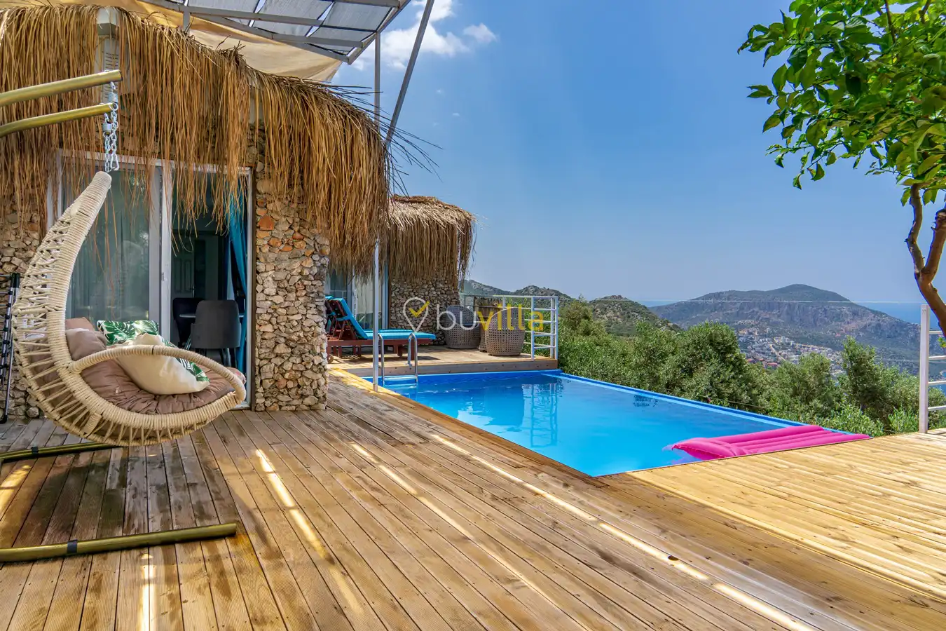 Kalkan Kördere bölgesinde 1 yatak odalı 2 kişi kapasiteli villamız muhteşem deniz ve doğa manzarasına hakimdir. Balayı çiftleri için ideal olan seçeneğimizin havuz katı korunaklıdır