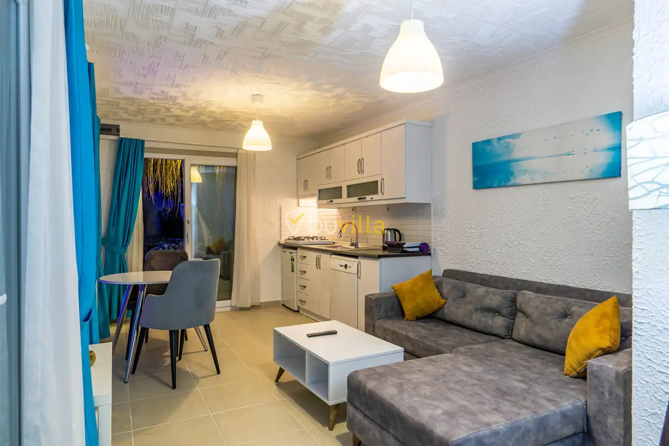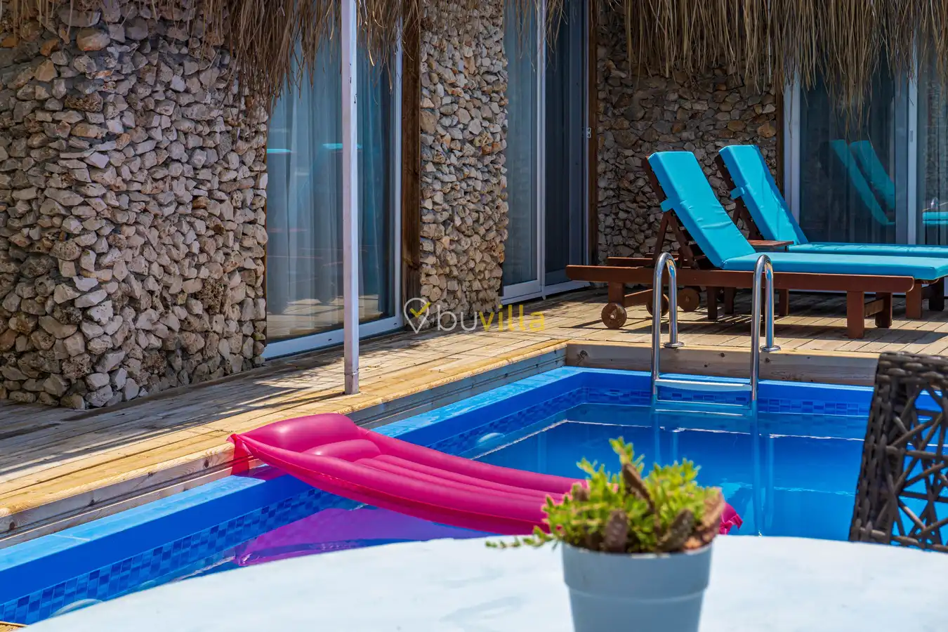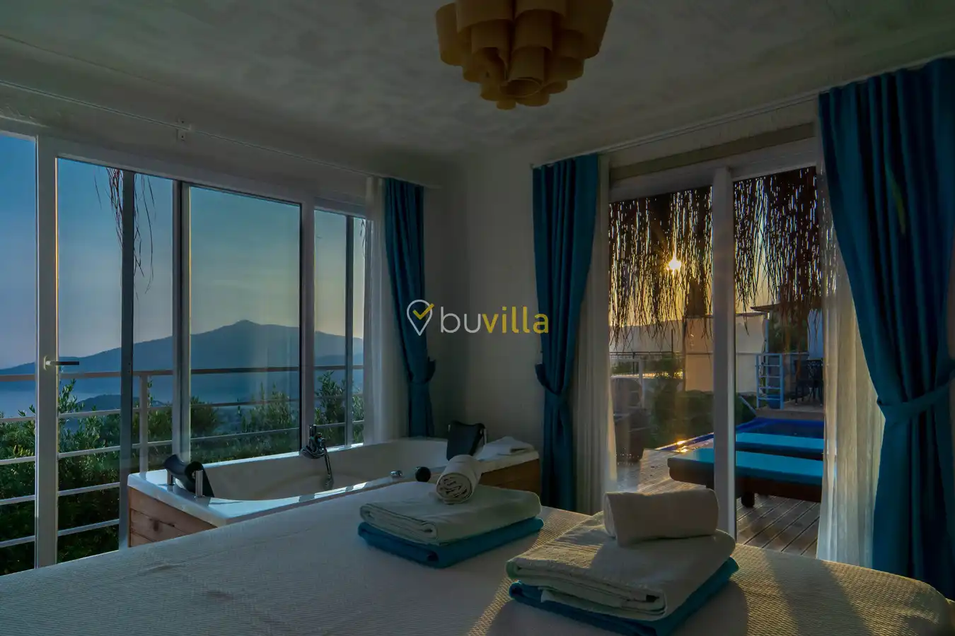 Kalkan Kördere bölgesinde 1 yatak odalı 2 kişi kapasiteli villamız muhteşem deniz ve doğa manzarasına hakimdir. Balayı çiftleri için ideal olan seçeneğimizin havuz katı korunaklıdır