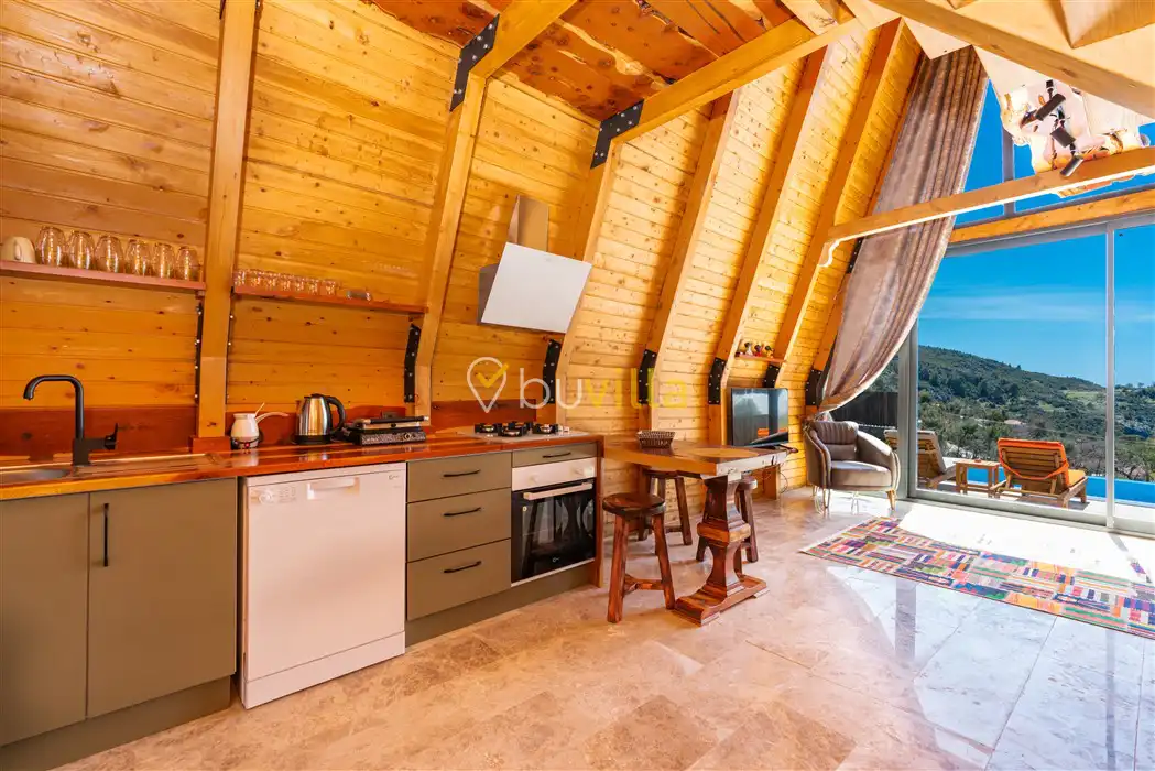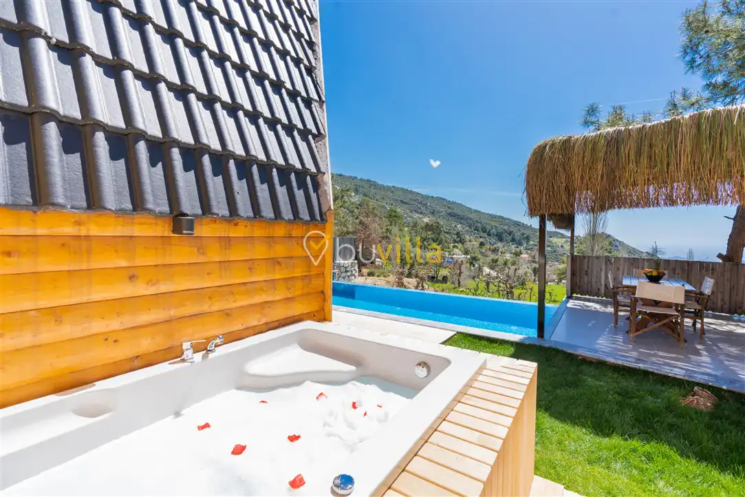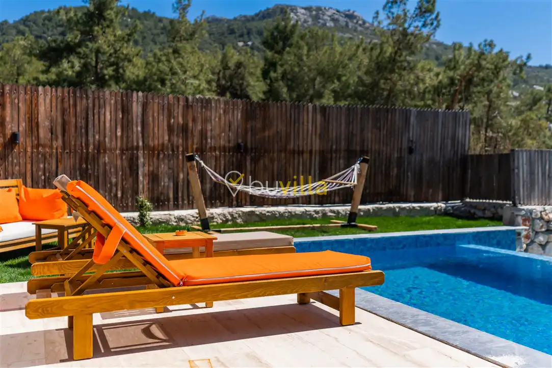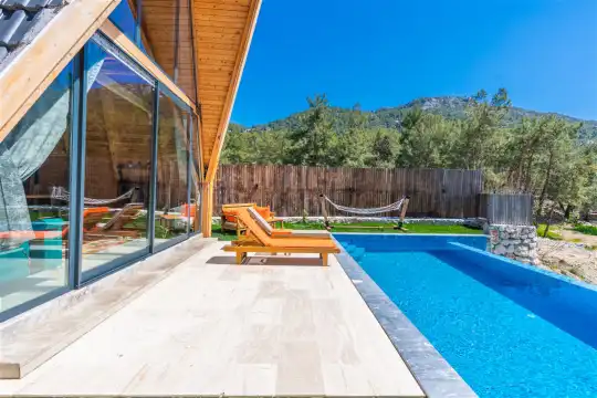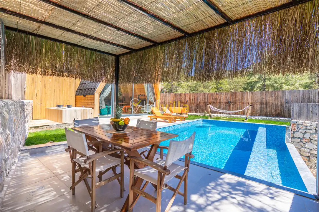 Mahremiyete uygun şekilde tasarlanan havuz alanı sayesinde, balayı çiftleri için sakin ve özel bir tatil ortamı sunmaktadır. Modern ahşap mimarisi ile doğa ile uyumlu bir tasarıma sahip olan Villa Pedro 1, özel yüzme havuzu ile konforlu ve keyifli bir konaklama deneyimi sağlar