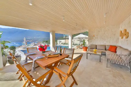 Kas Çukurbag yarimadasinda yer almaktadir. 4 yatak odali 8 kisiye kadar konaklama imkani saglayan villamiz muhtesem deniz manzarasiyla ve özel plaji ile unutulmaz bir tatil imkani saglamaktadir. Amerikan mutfaginda ihtiyaç duyabileceginiz tüm ekipmanlar yer almakta olup konforlu mobilyalarla dizayn edilmis salonu hizmetinizdedir.