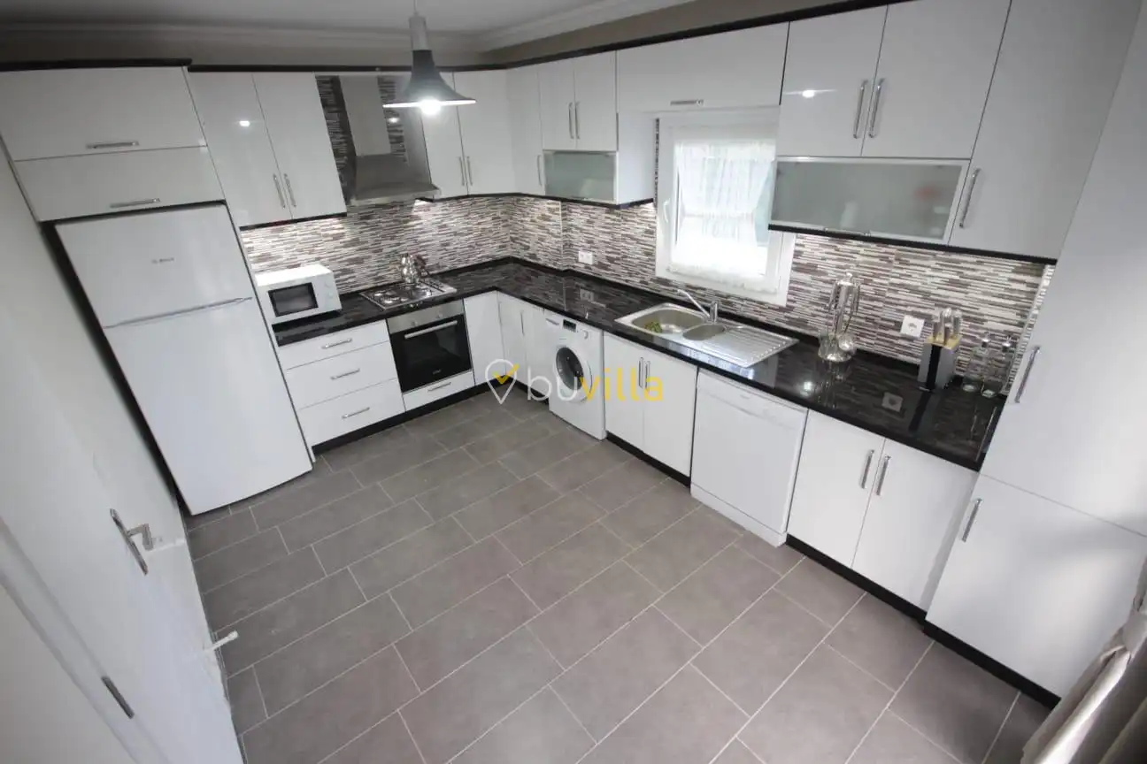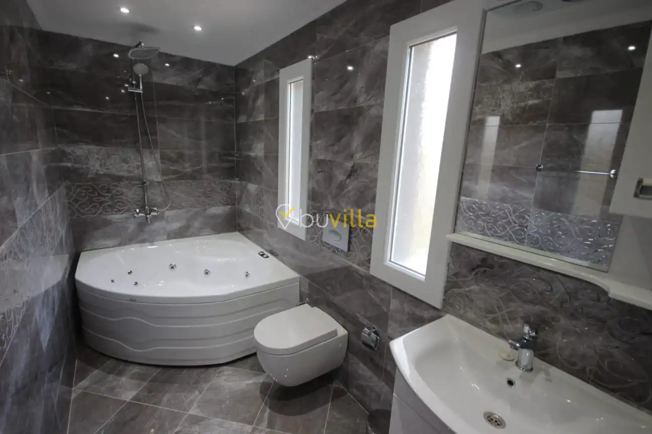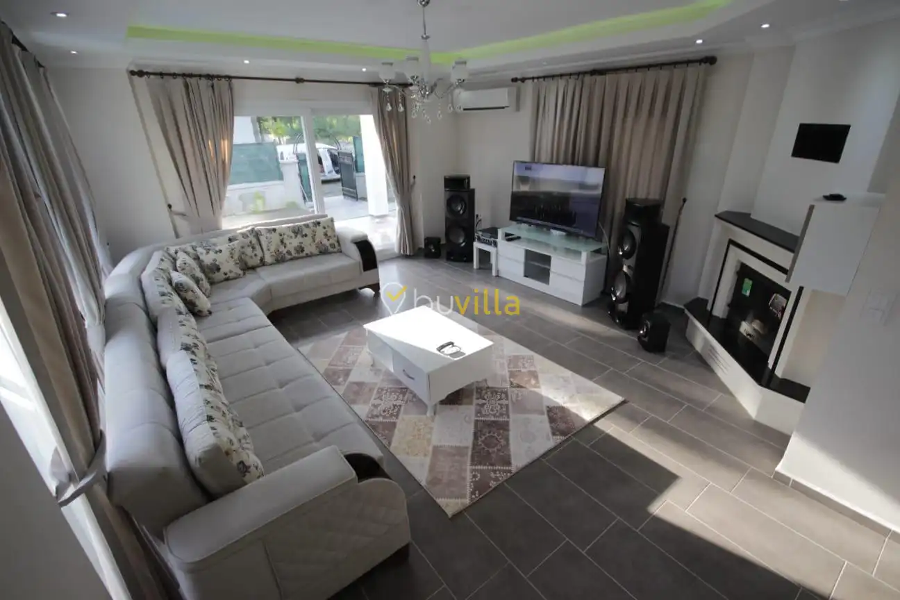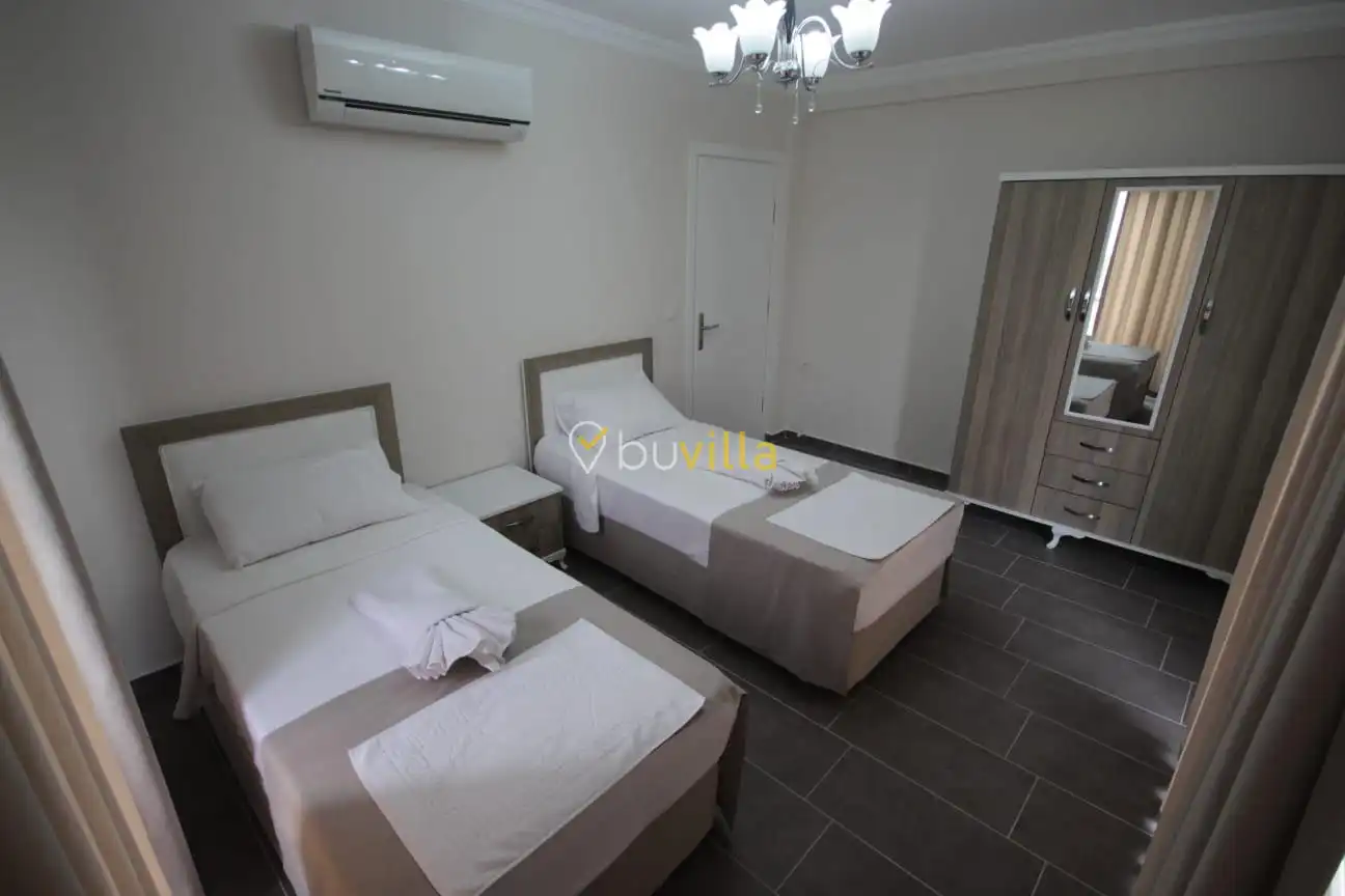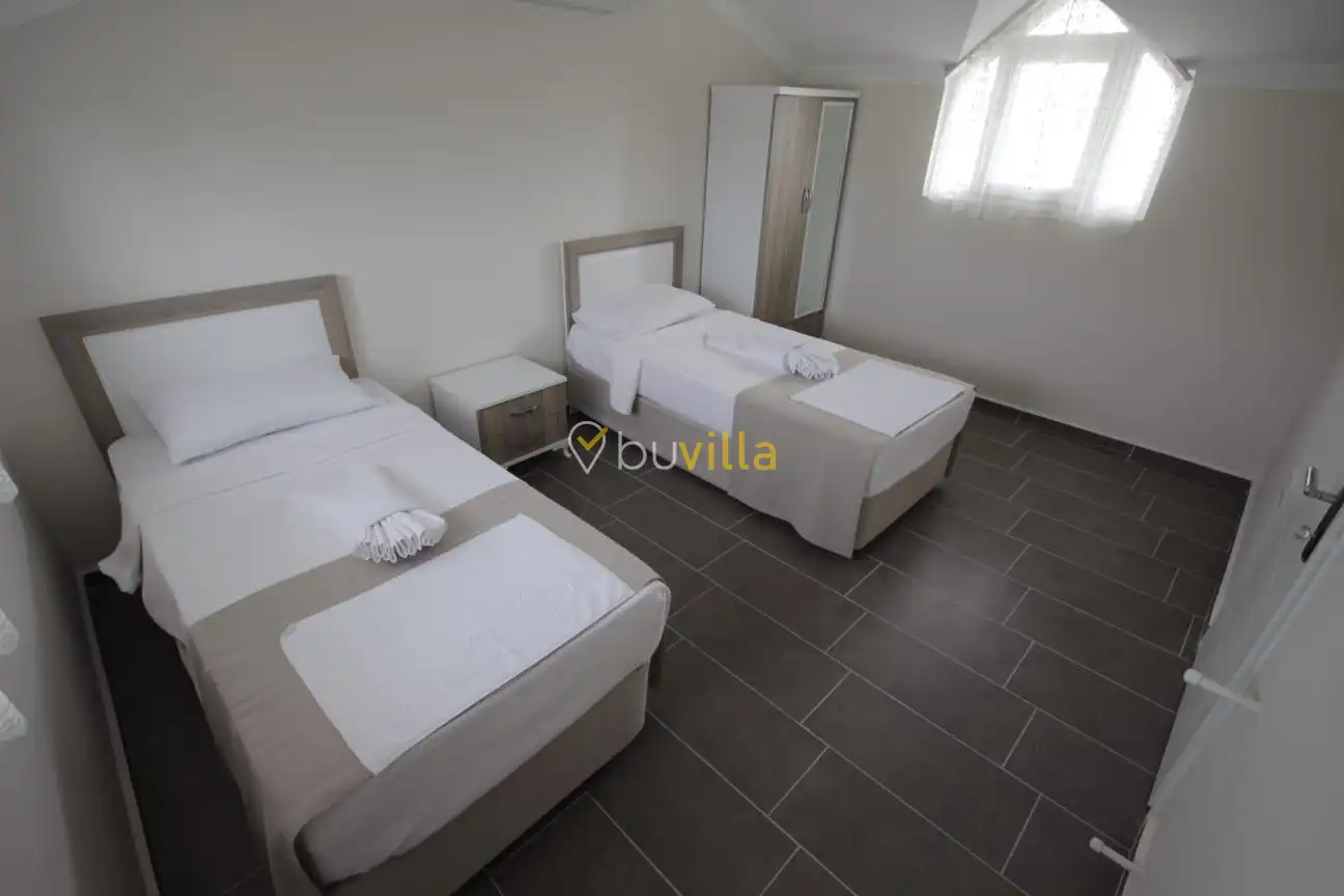 Villa içerisinde dört yatak odası ve üç banyo bulunmaktadır. Birinci yatak odasında çift kişilik yatak, klima, WC-duş ve jakuzi yer alırken, ikinci ve üçüncü yatak odalarında ikişer tek kişilik yatak ve klima bulunmaktadır. Dördüncü yatak odasında ise çift kişilik yatak ve klima mevcuttur. Villanın salonunda klima, mutfak ve TV bulunmakta olup ortak kullanım için iki adet WC-duş yer almaktadır.
