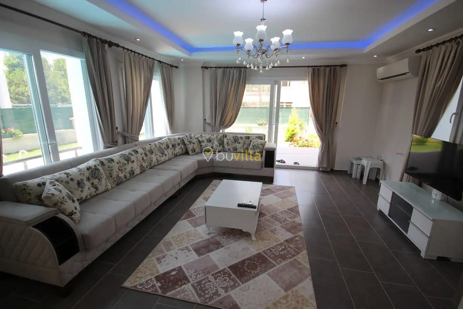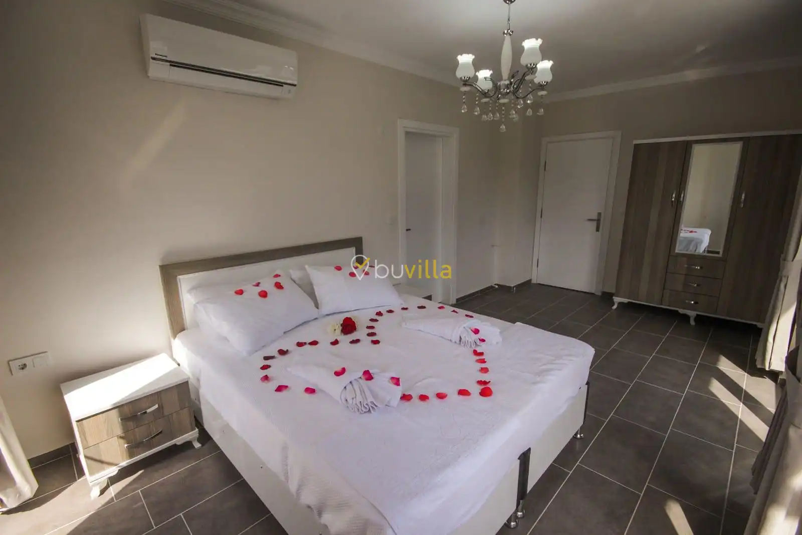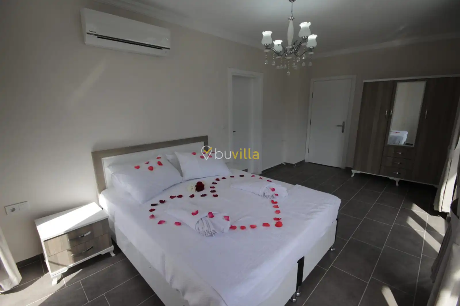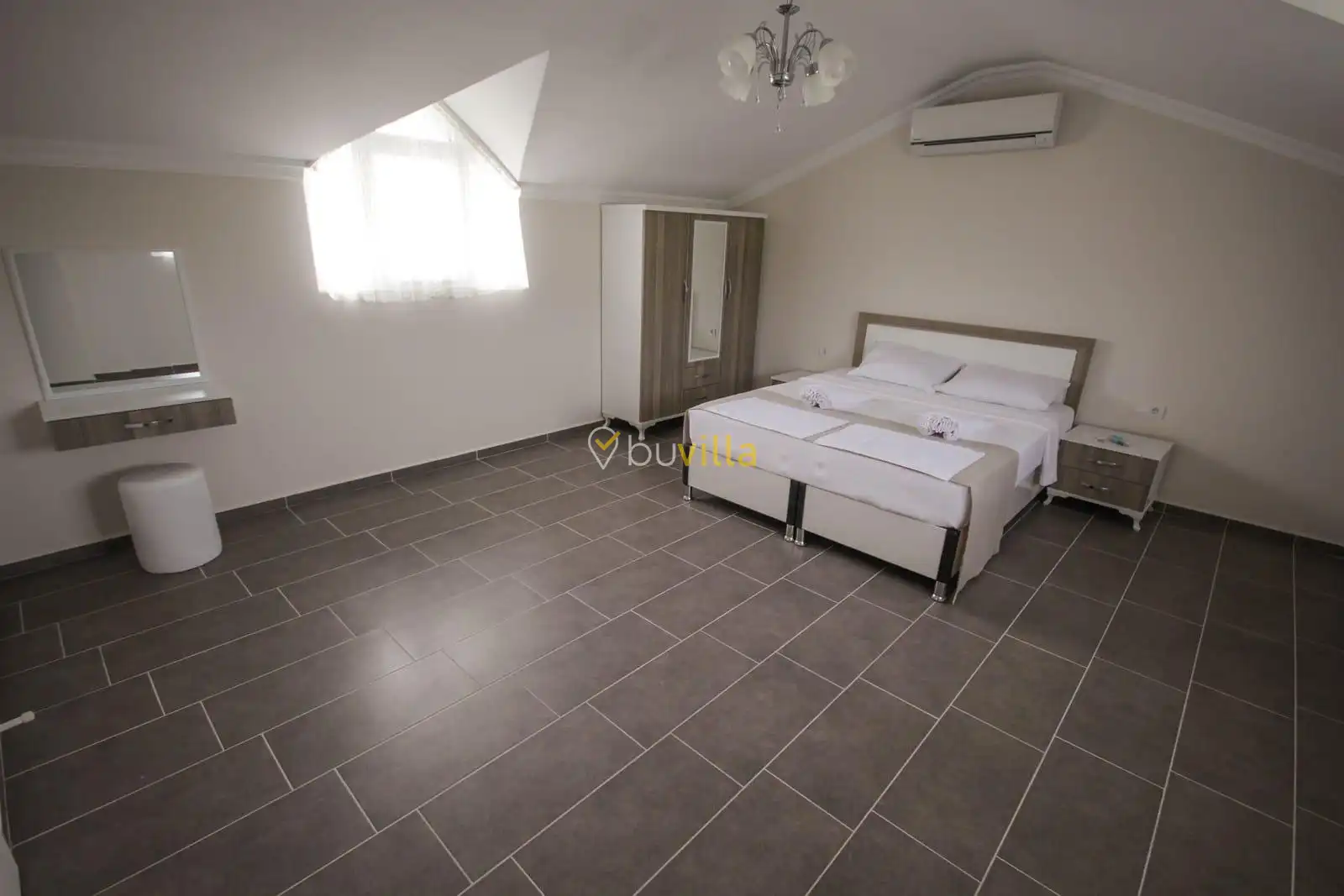 Villa içerisinde dört yatak odası ve üç banyo bulunmaktadır. Birinci yatak odasında çift kişilik yatak, klima, WC-duş ve jakuzi yer alırken, ikinci ve üçüncü yatak odalarında ikişer tek kişilik yatak ve klima bulunmaktadır. Dördüncü yatak odasında ise çift kişilik yatak ve klima mevcuttur. Villanın salonunda klima, mutfak ve TV bulunmakta olup ortak kullanım için iki adet WC-duş yer almaktadır.